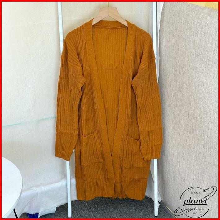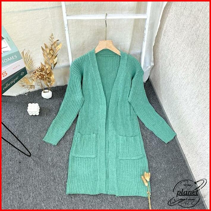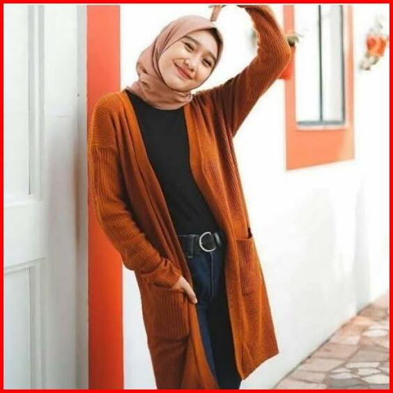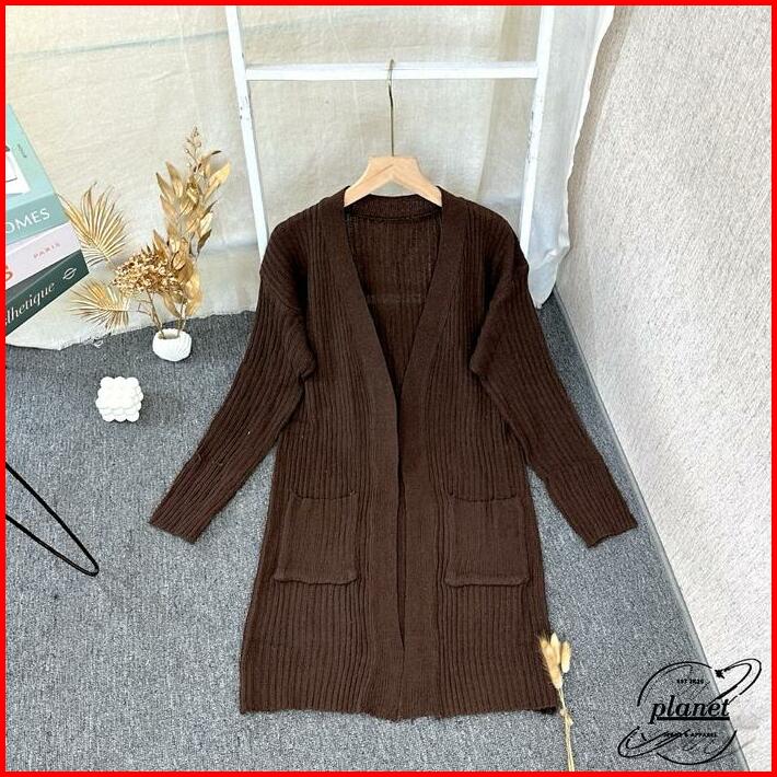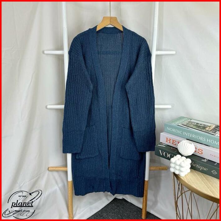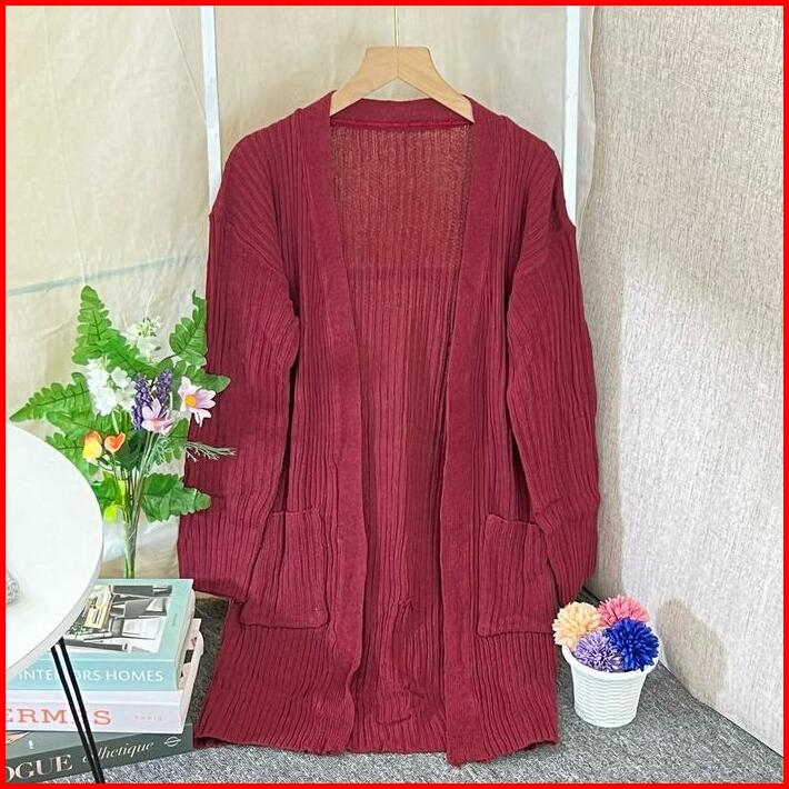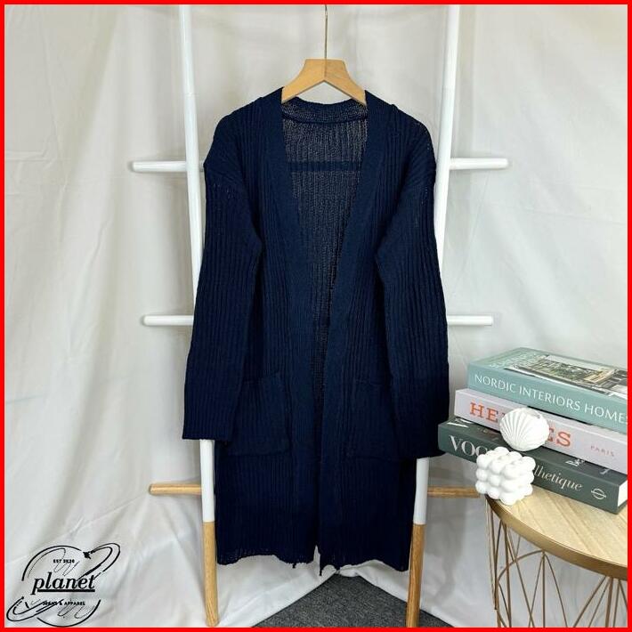Belle Cardigan Panjang Baju Atasan Wanita Rajut Polos Hitam Long Cardigan Oversize Saku Korea Cream Kardigan Nyaman Oute