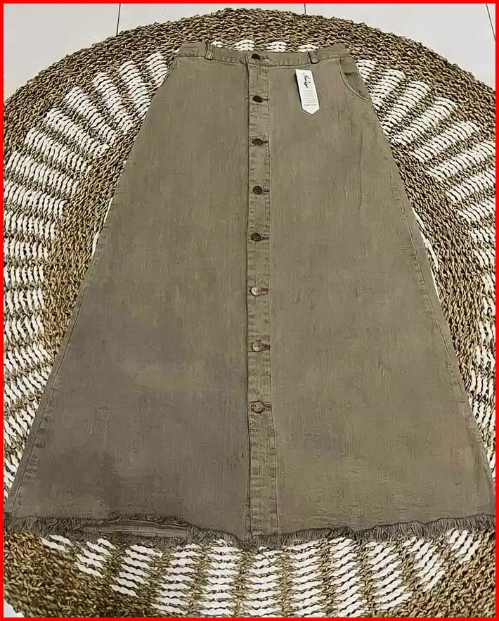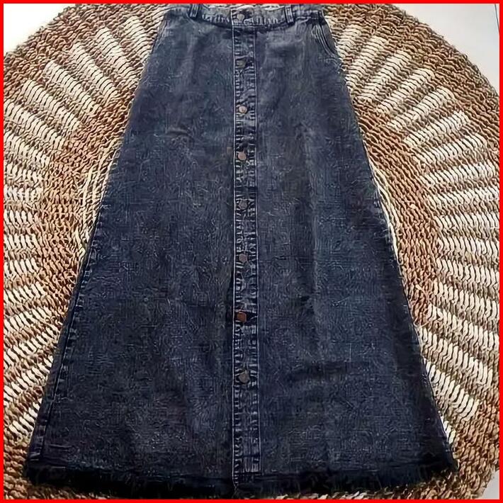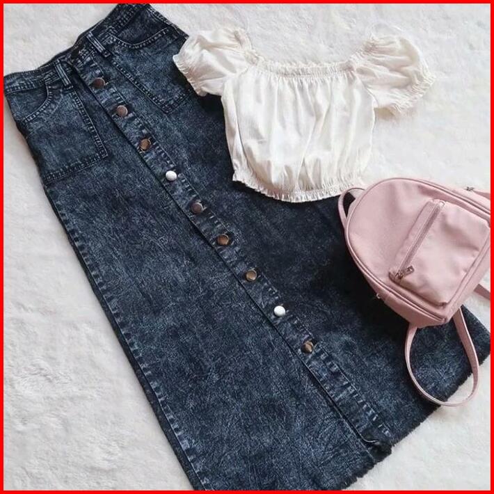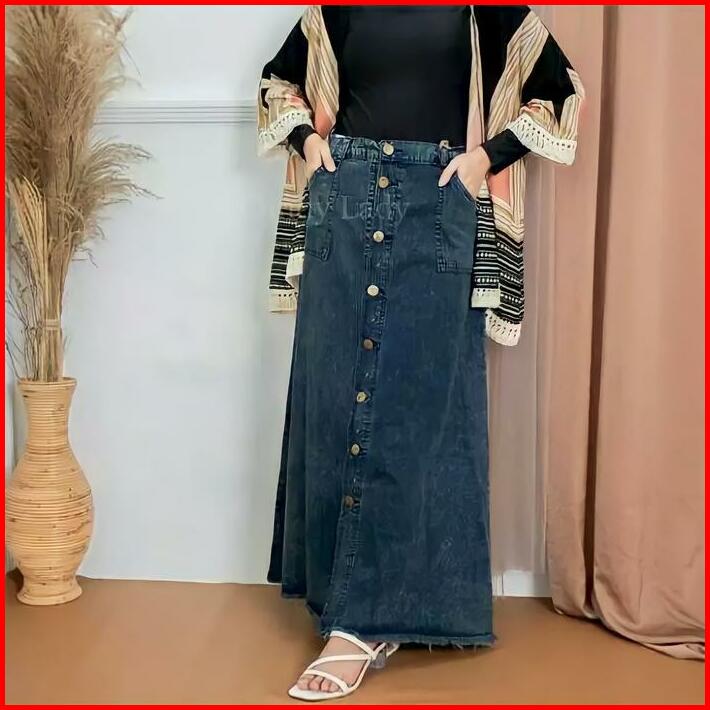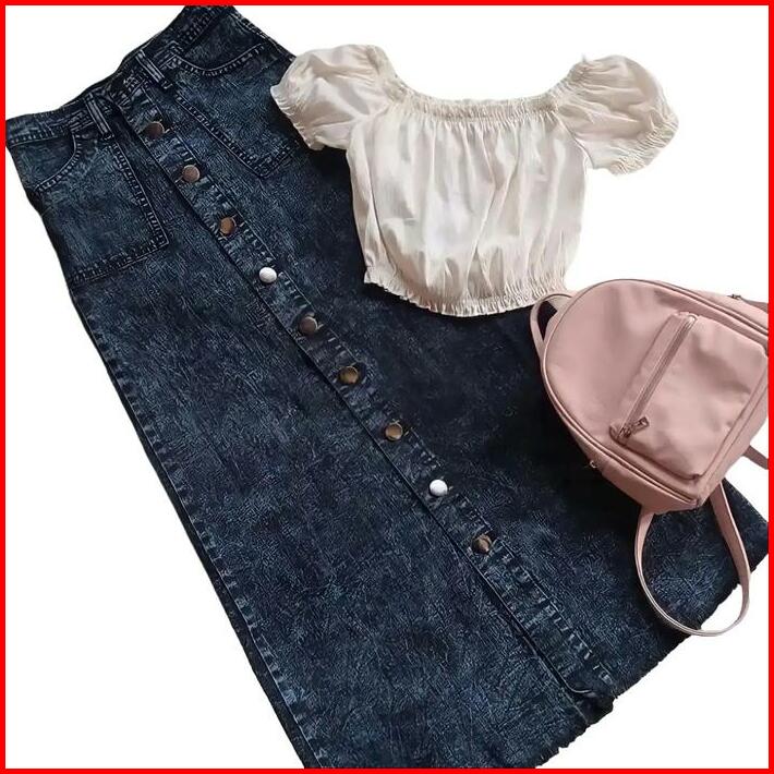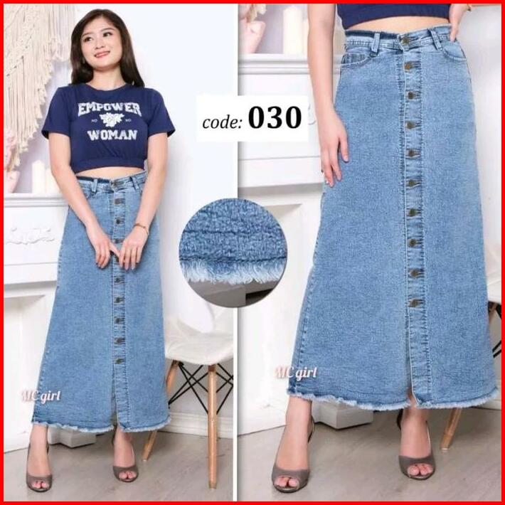 Rok Jeans Kancing Depan Bentuk A Rok Jeans Tebal A-line Formal Putih Rawis Remaja Panjang Wanita Hitam Dewasa Casual Baw