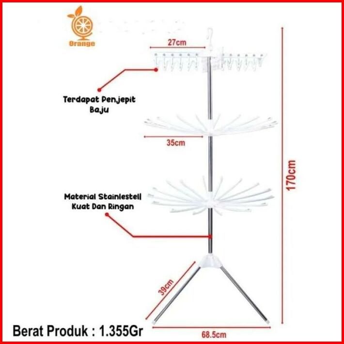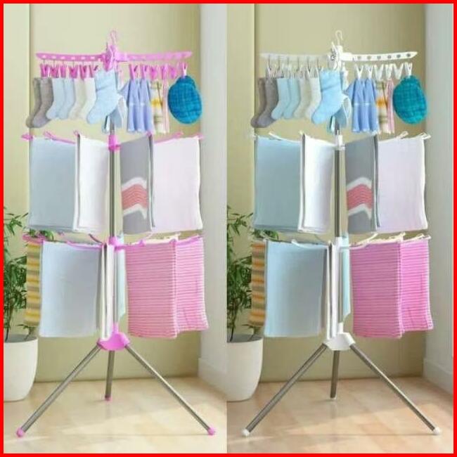 Supercook Jemuran Menara Lipat Tempat Jemuran Baju Model Menara 3 Susun Tempat Jemuran Gantungan Bayi Jepitan Baju Pakai