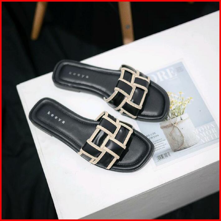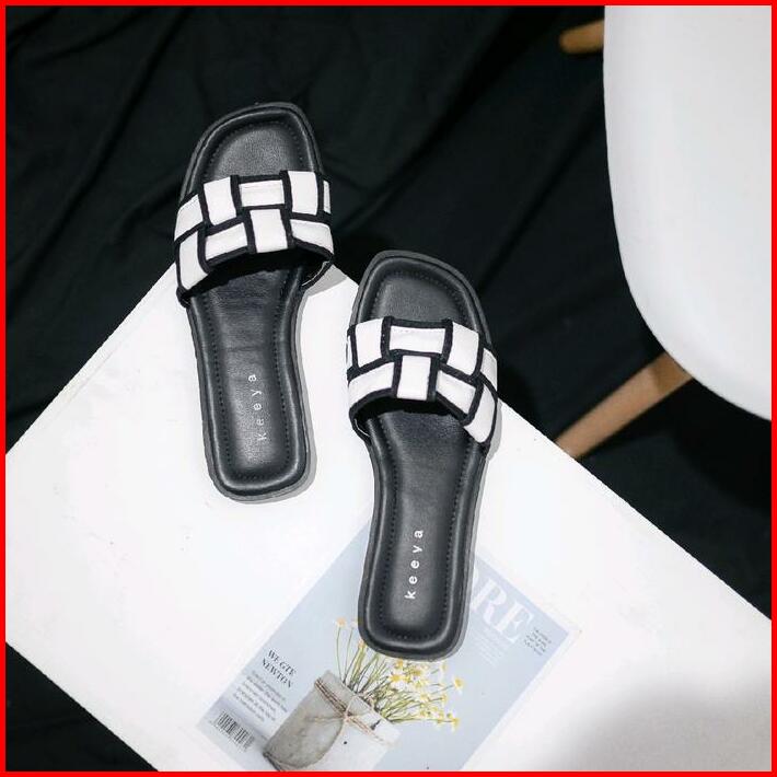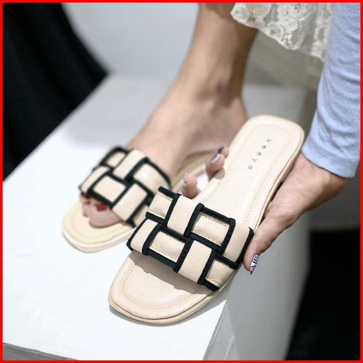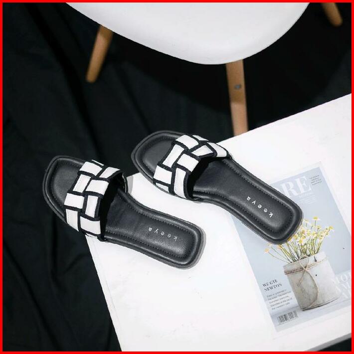 Keeya Sandal Teplek Wanita Sandal Flat Wanita Sandal Slop Wanita Simpel Sendal Putih Hitam Sandal Teplek
