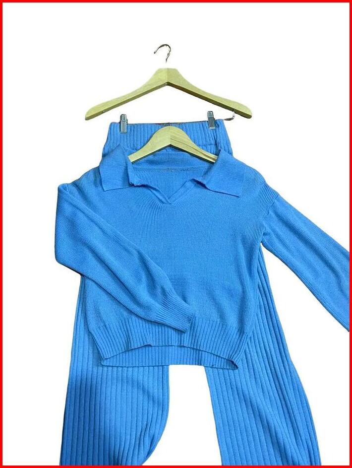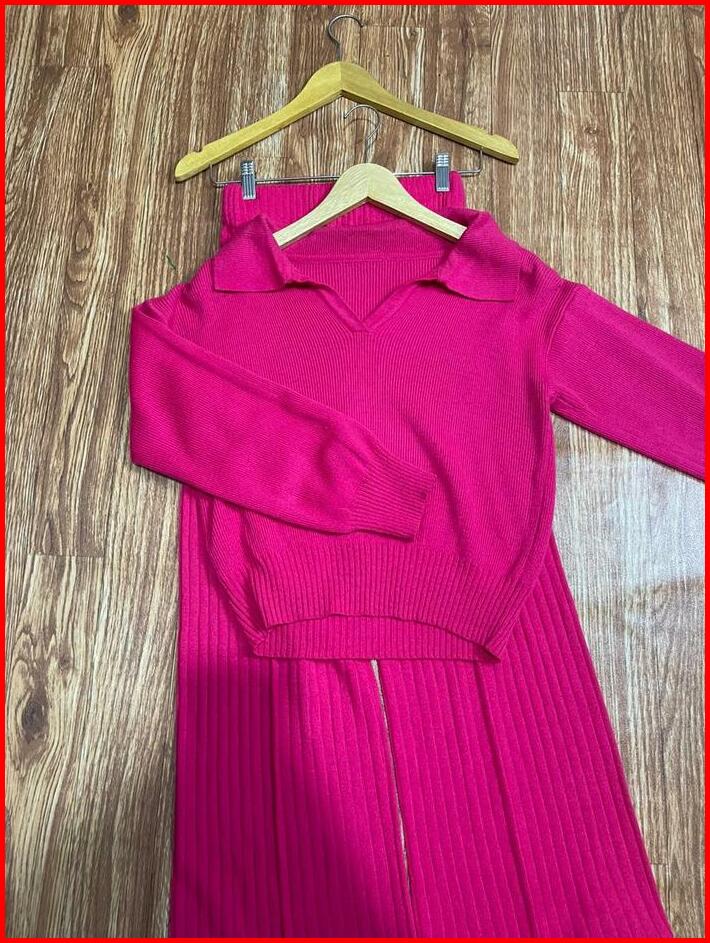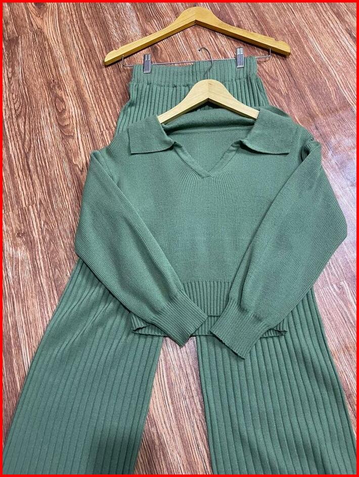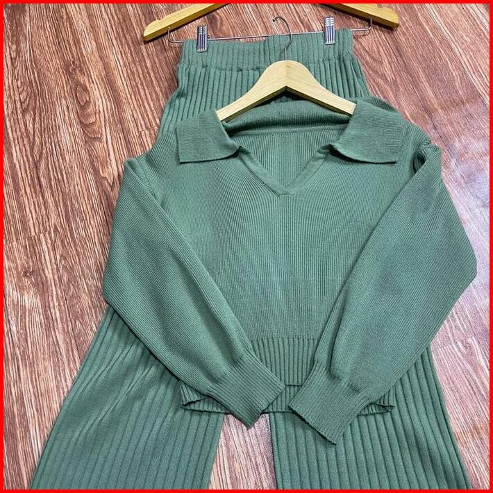 Setelan Rajut Wolly Wanita Atasan Polo Kerah Panjang Kulot Highwaist Tebal Oneset Wanita Oneset Knit Baju Celana Lengan