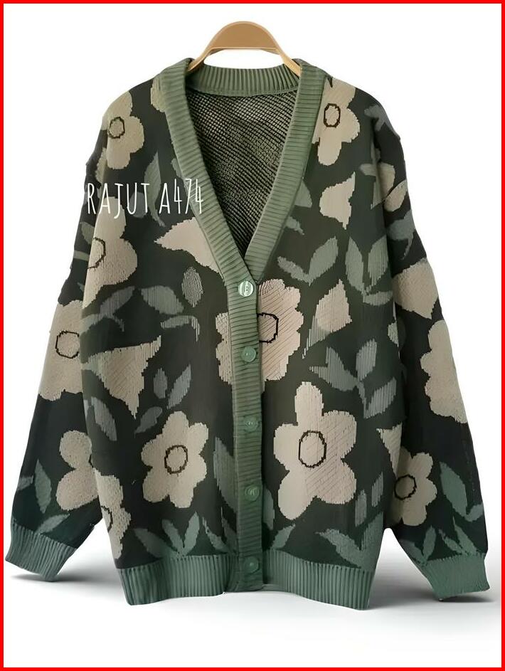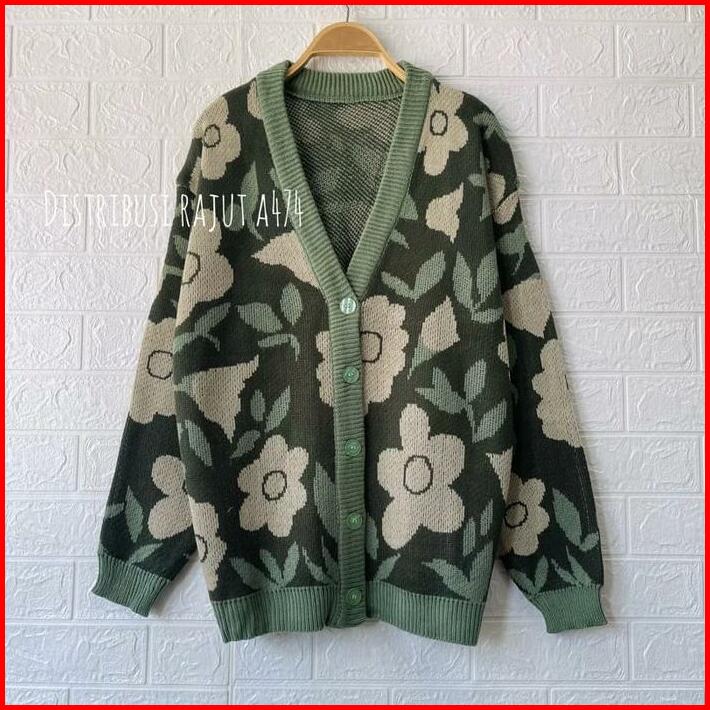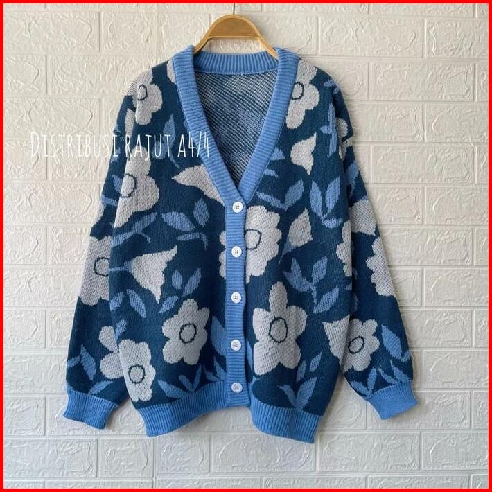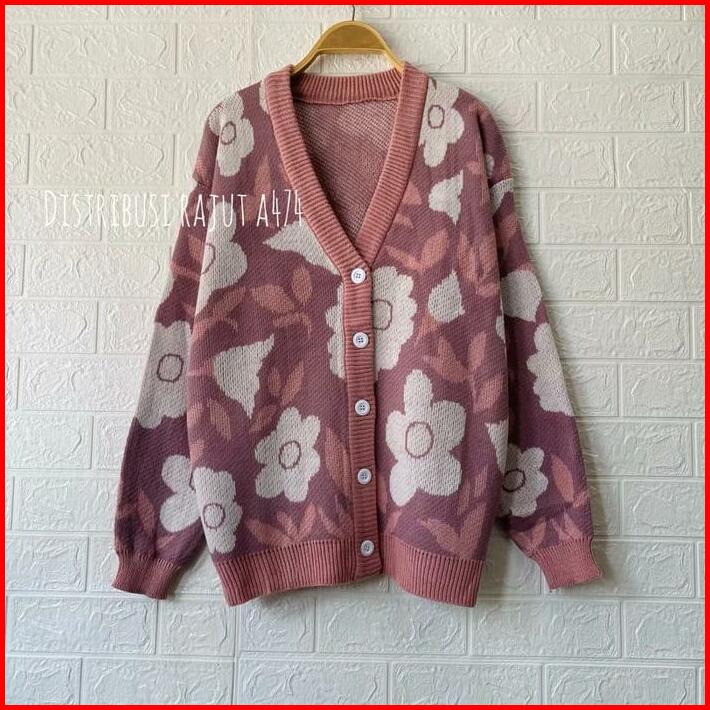 Melisa Flower Cardigan Rajut Motif Bunga Atasan Lengan Panjang Wanita Korea Baju Knitwear Top Tangan Crop