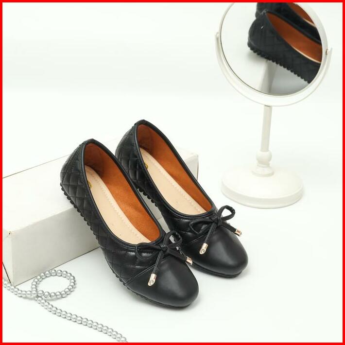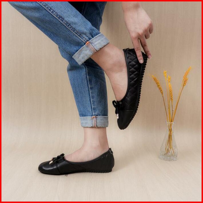 Jagjit Sandra Flat Shoes Wanita Sepatu Flatshoes Wanita Terbaru Sepatu Kantoran Kuliahan Keren Hitam Karet Kerja Putih