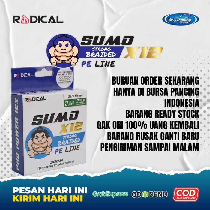 senar pancing pe Senar Pe Radical Sumo X12 300 Meter Fishing Line Kuat Anti Keriting - PE5.0/0.37MM