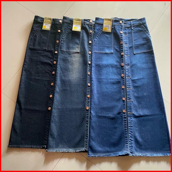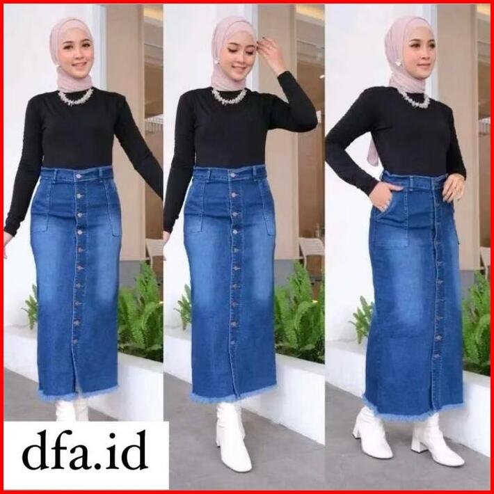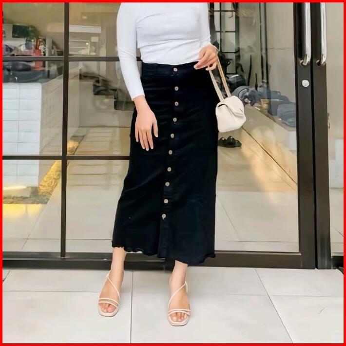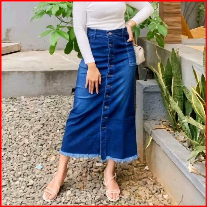 Rok Jeans Stretch Span Panjang Gisca Kancing Depan Tebal Dan Melar
