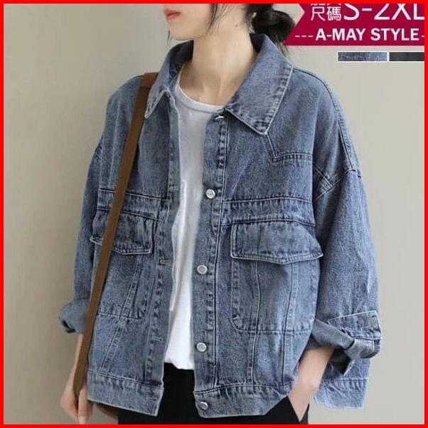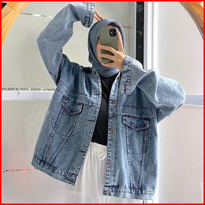 Orimoza Jaket Jeans Oversize Wanita Kancing