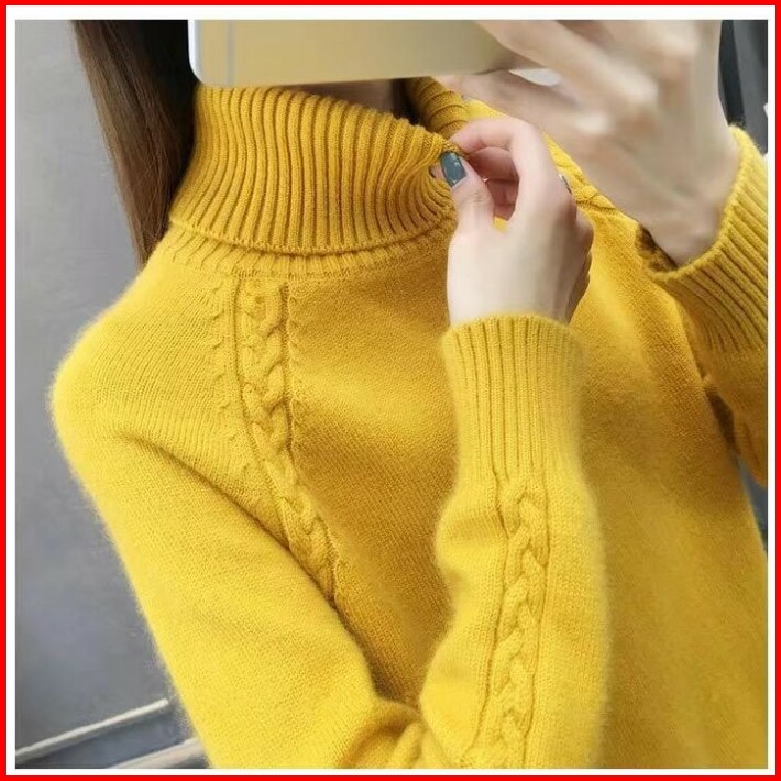 Import Woman Slim Turtleneck Knit Top Bella Winter Outfit Baju Rajut