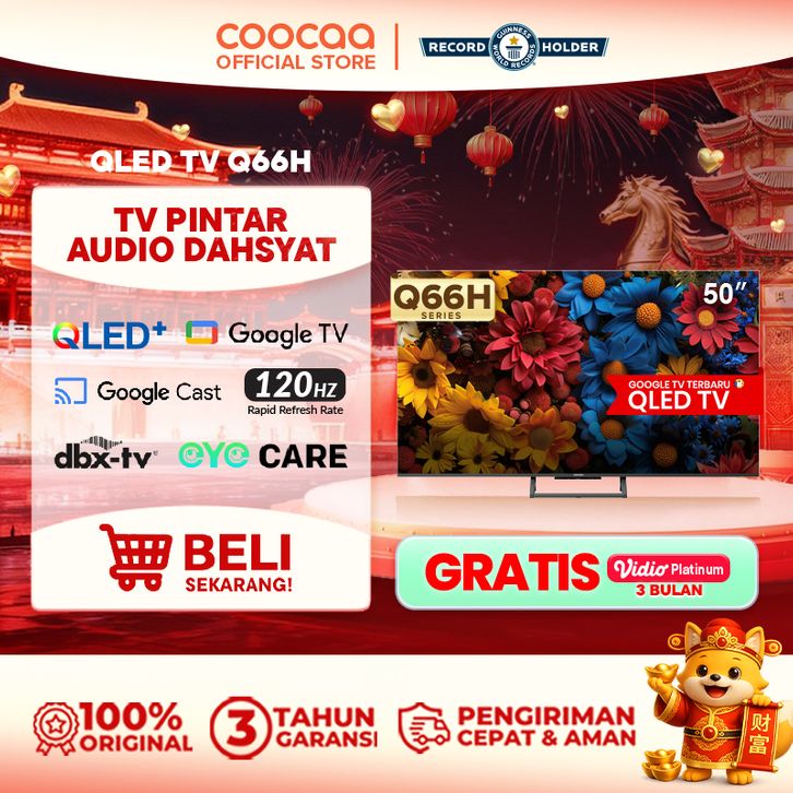 COOCAA TV 50 inch Q66H - 4K QLED+ - Google TV - S AI Engine - MEMC - 120Hz Motion - dbx-tv - EyeCare 5.0 (COOCAA 50Q66H)