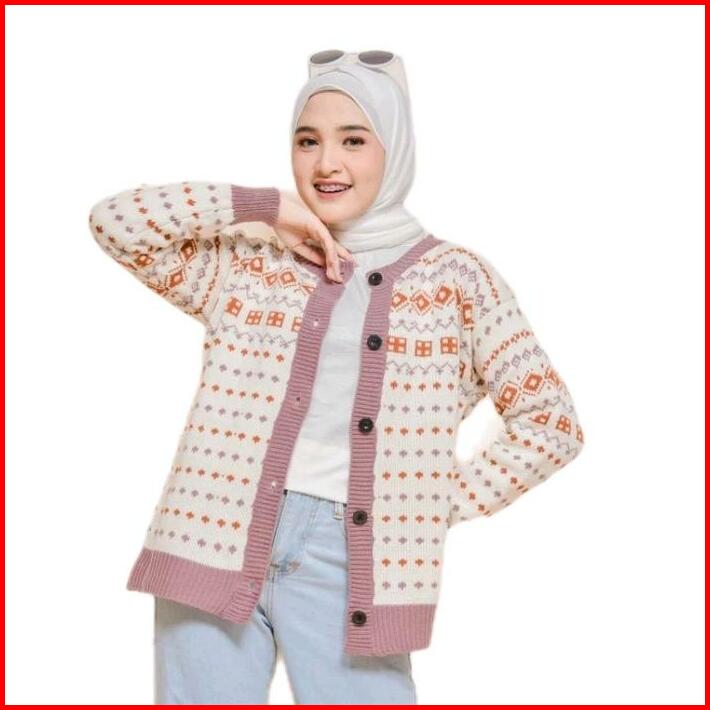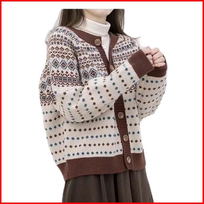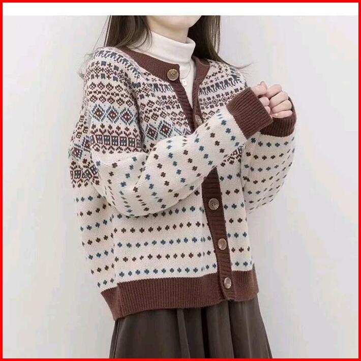 Cardigan Rajut Harajuku Motif Tribal Batik Kardigan Outer Wanita Lengan Panjang Baju Nyaman Cardigan Y2k Tangan Knitwear
