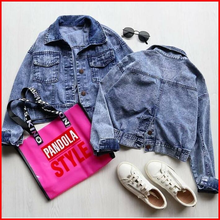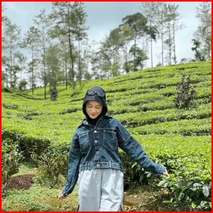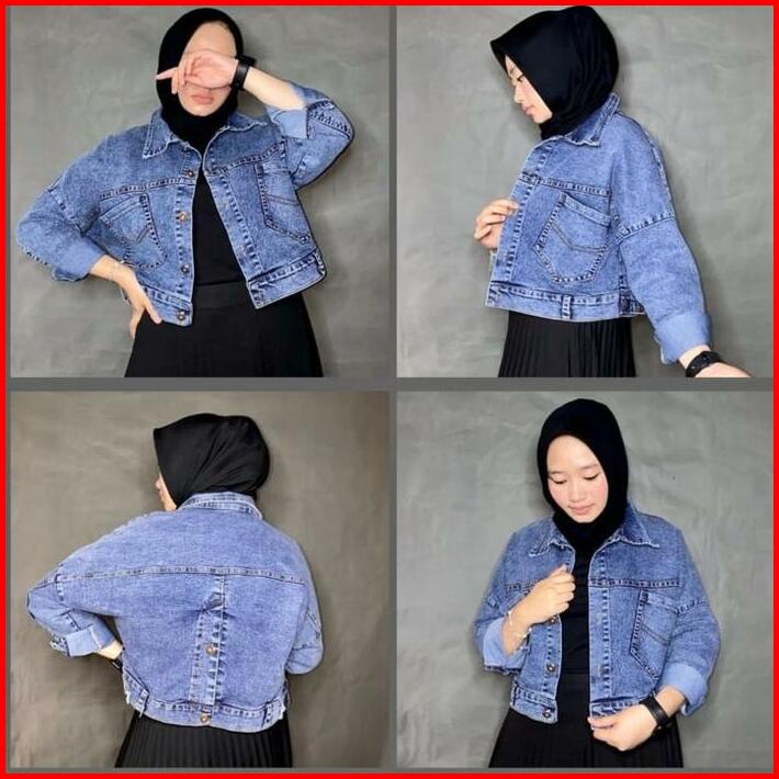 Emweha Baju Jaket Jeans Wanita Variasi Kancing Belakang Meizia Atasan Oversize Denim Cewek Crop