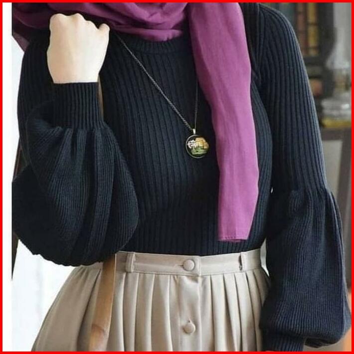 Atasan Rajut Wanita Lengan Balon Sweater Rajut Wanita Baju Rajut Inner Rajut Sweater