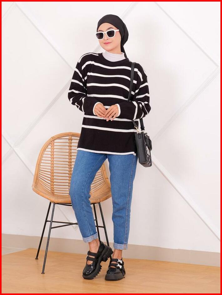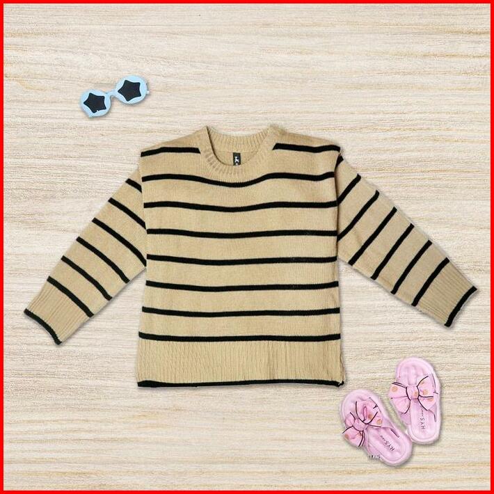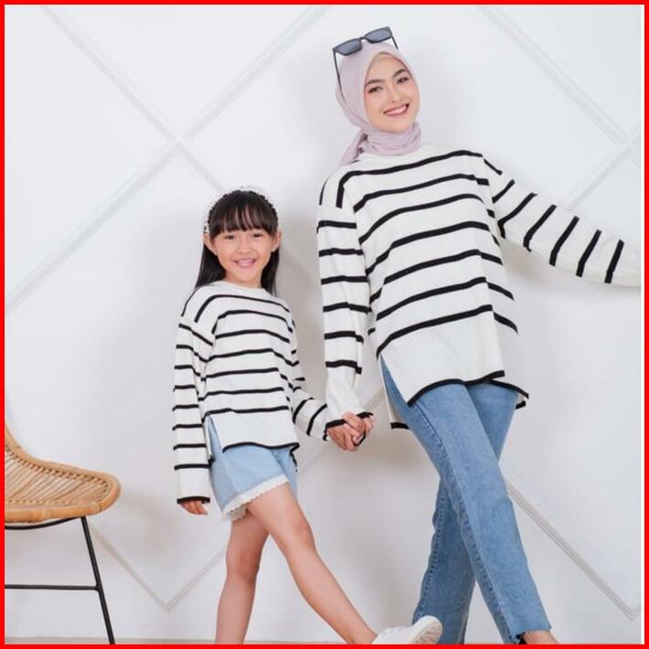 Mamado Miillie Sweater Oversize Rajut Couple Dewasa Dan Anak Premium Motif Salur Strip Cocok Untuk Wanita Tebal Knitwear