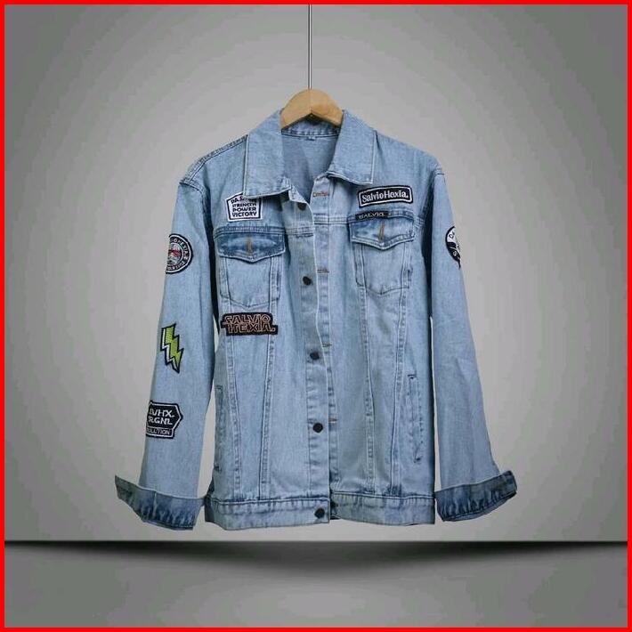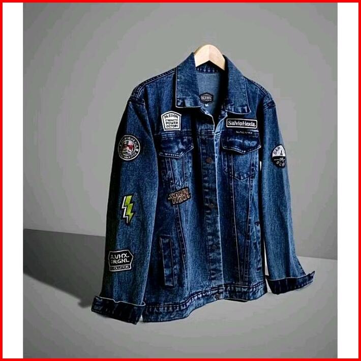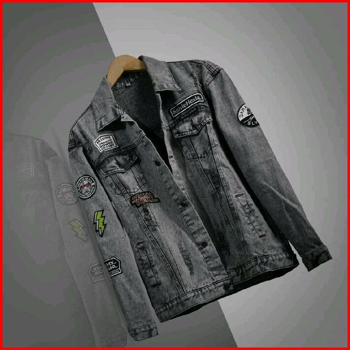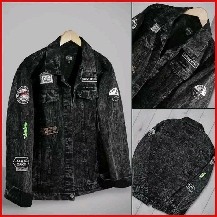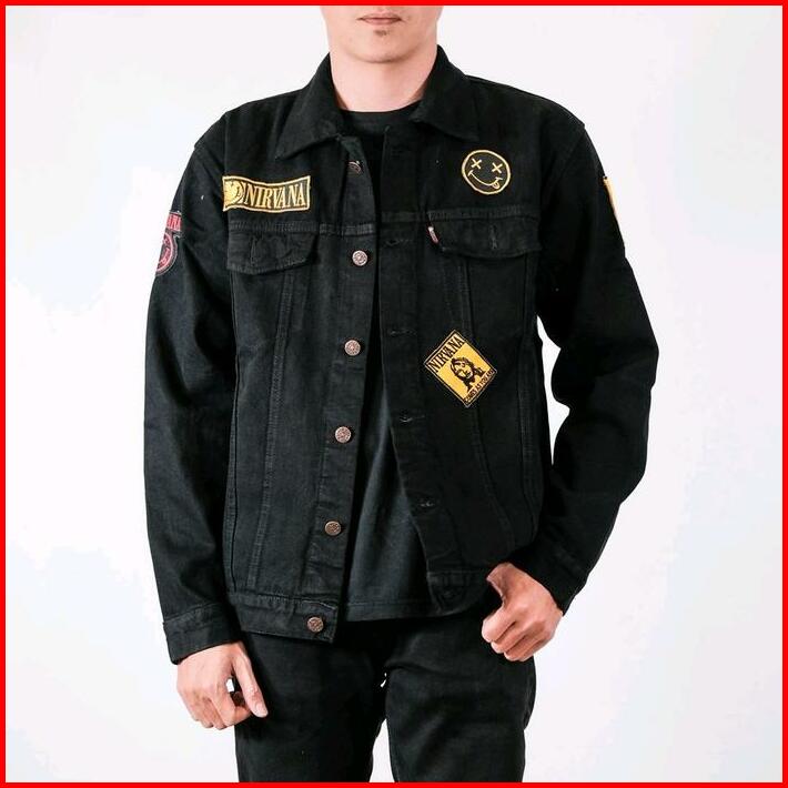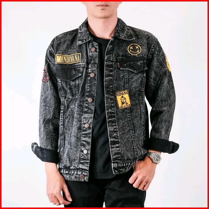 Jaket Jeans Pria Bordir Jaket Denim Cowok Cewek Sandwash Hitam Patch Emblem Casual Distro M-xxxl Nrvana Bmth Kancing Teb