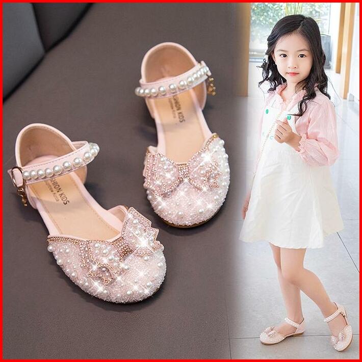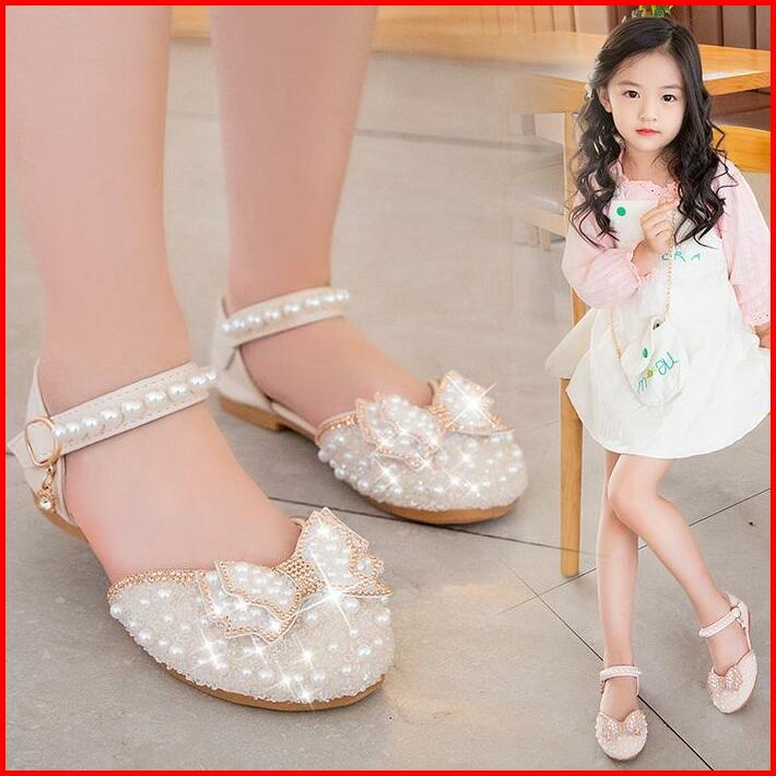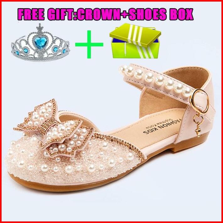 Kotak Sepatu Mahkota Sepatu Pesta Anak Cewek Cristal Mutiara Diamond Fashion Kids Sandal 21-34