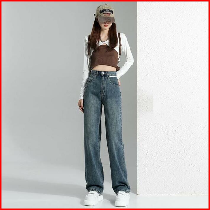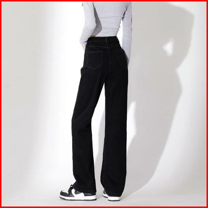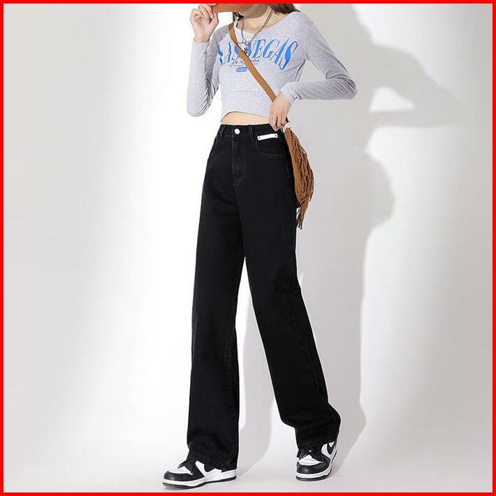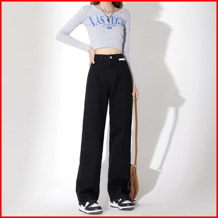 Celana Jeans Panjang Wanita Kulot High Waist Premium Korean Style Hitam Fit Kaki Nyaman Slim Denim Cutbray