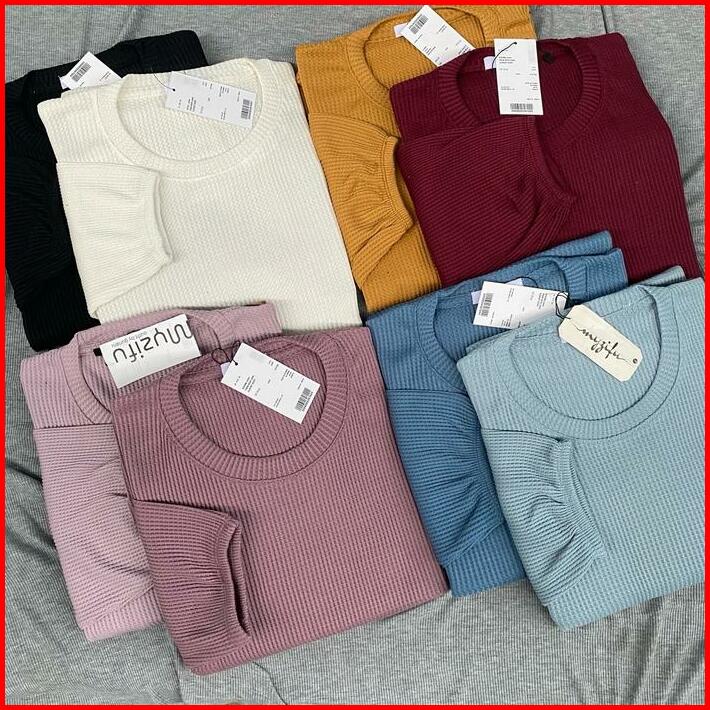 Atasan Blouse Hanover Rajut Oversize Tangan Balon Baju Batwing