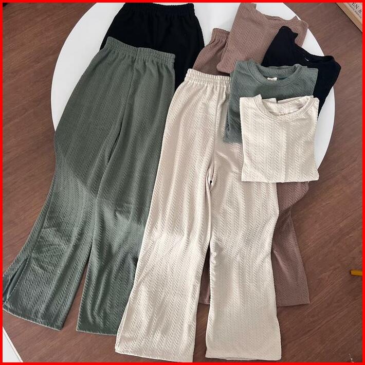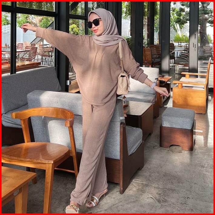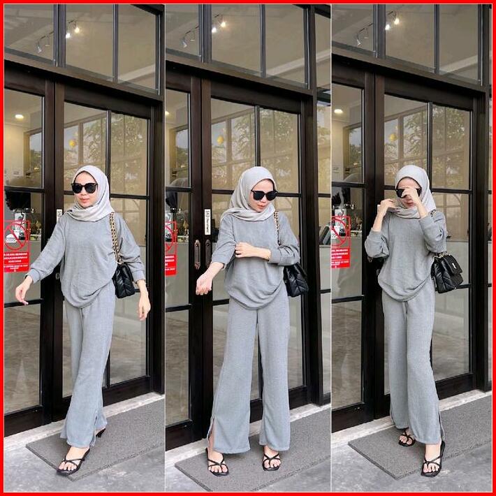 Louis Setelan Atasan Batwing Celana Cutbray Bahan Berry Knited