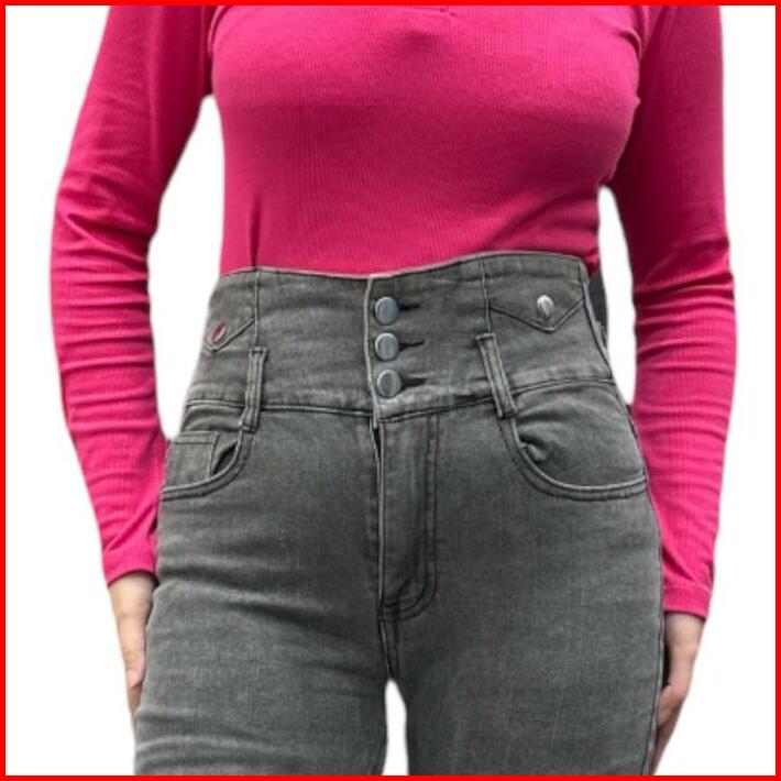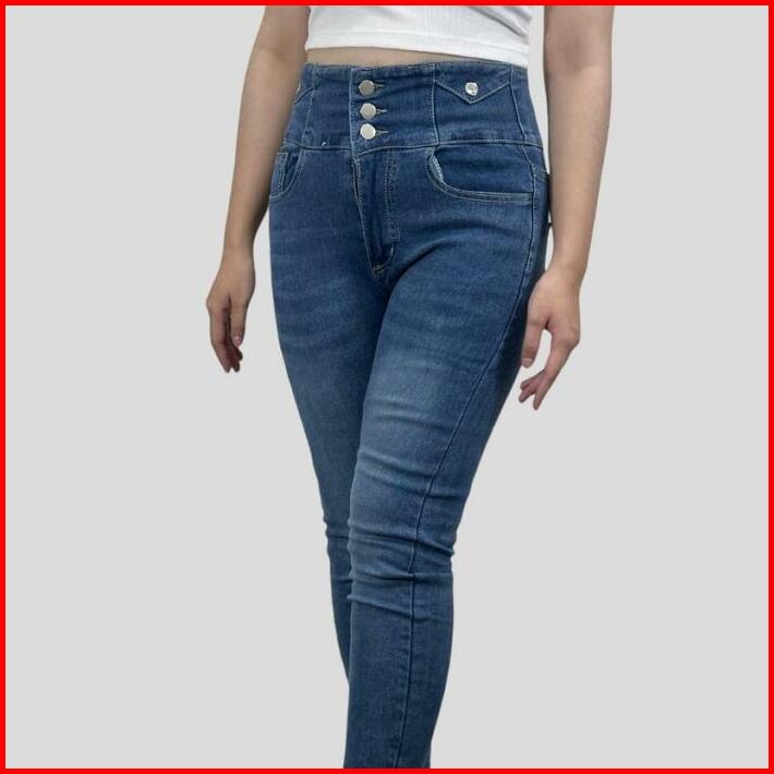Celana Jeans Skinny Highwaist Wanita Premium Korean Style Abu Biru Panjang Slim Fit Muda Kaki Nyaman Denim Cutbray Stret