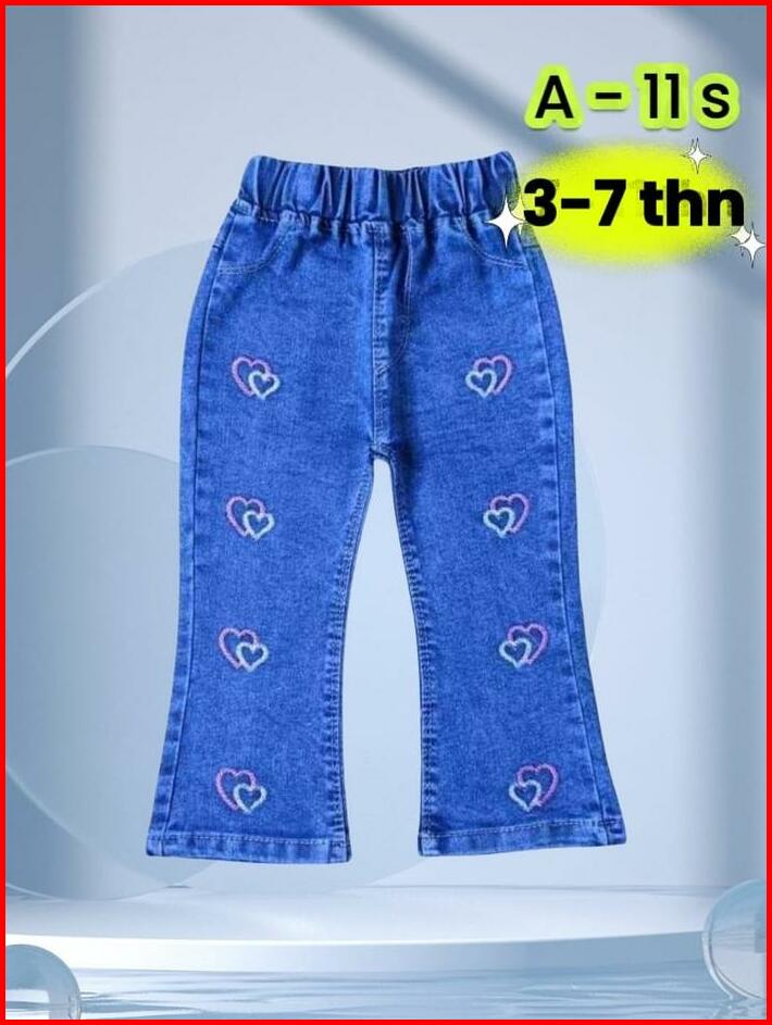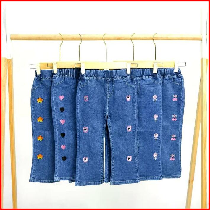 Celana Jeans Cutbray Bordir Anak Perempuan Import Umur 1-10 Tahun Jeans Anak Perempuan Terbaru Denim