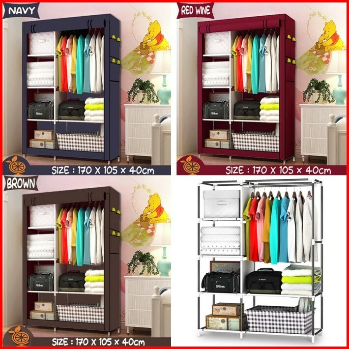 Rak Baju Dengan Tutup Resleting Lemari Kain Plastik Portable 105nt