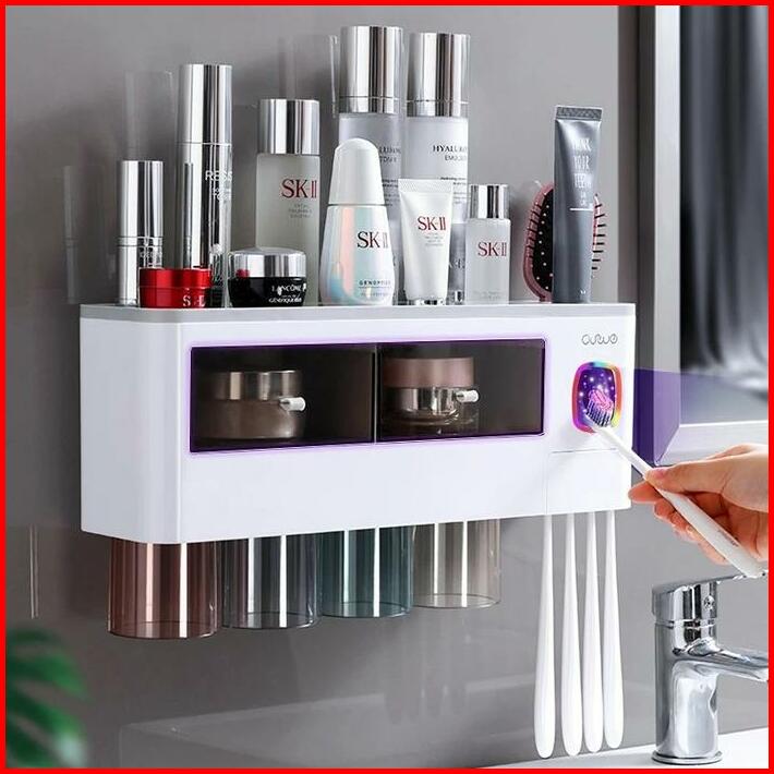 Rak Dispenser Odol 3 Cups Tempat Sikat Sabun Botol Dilengkapi 3 Cups