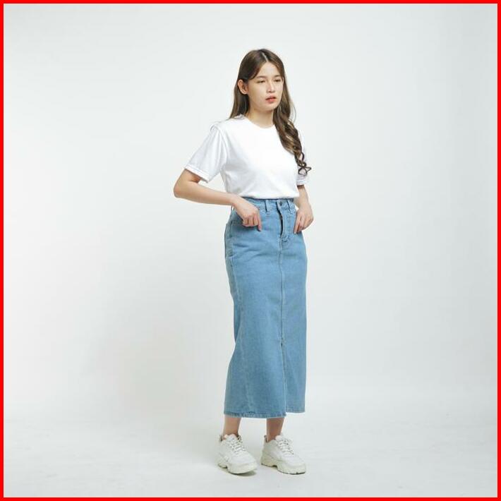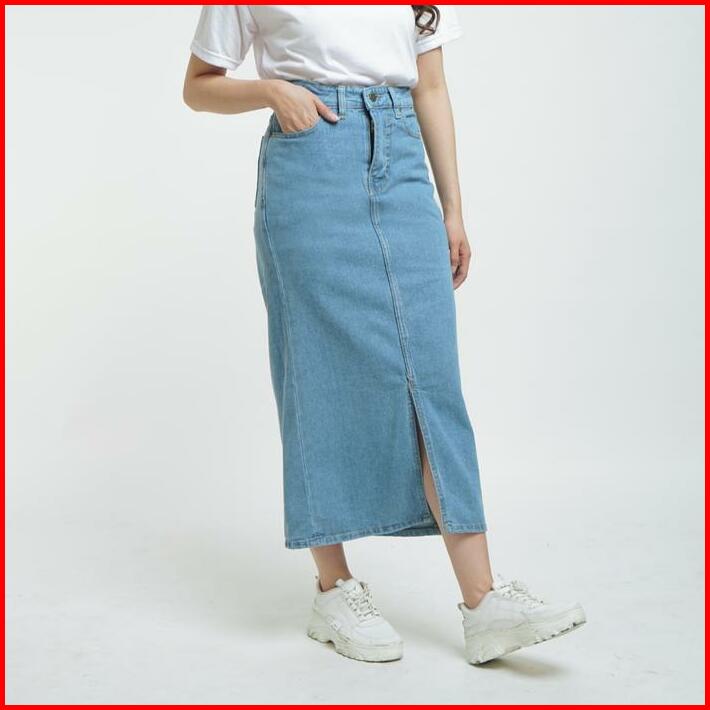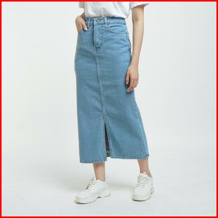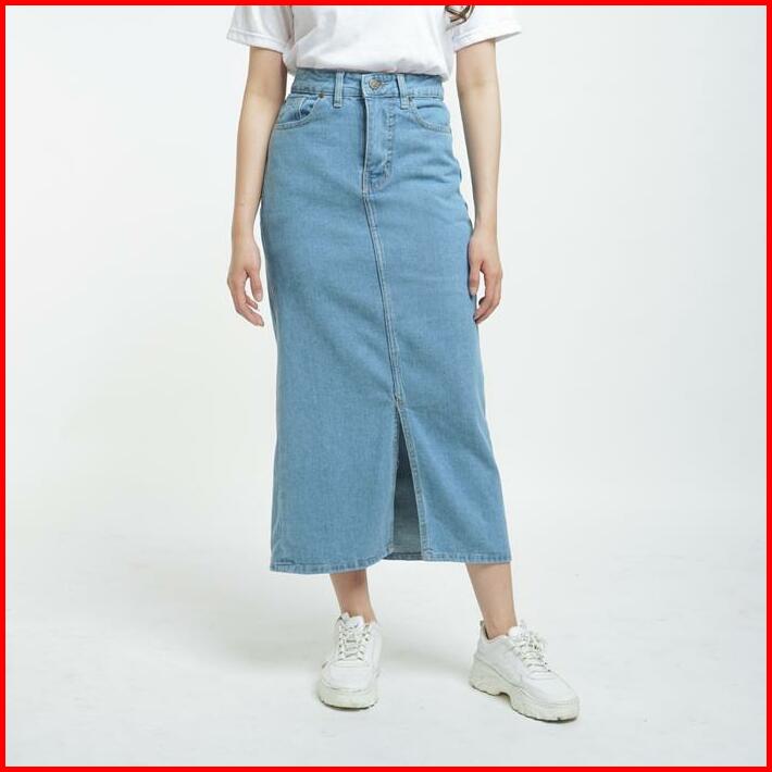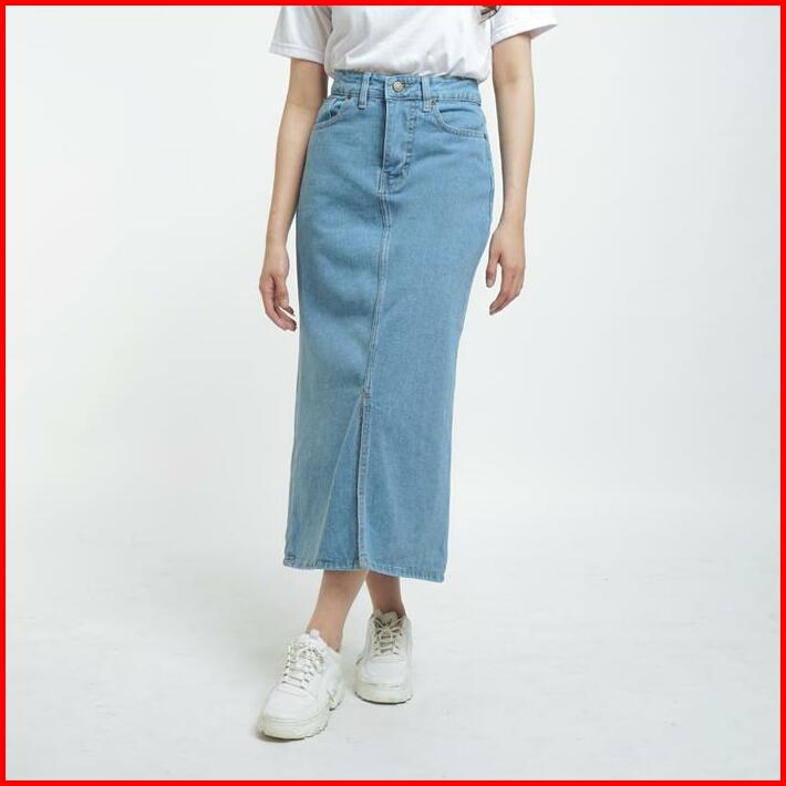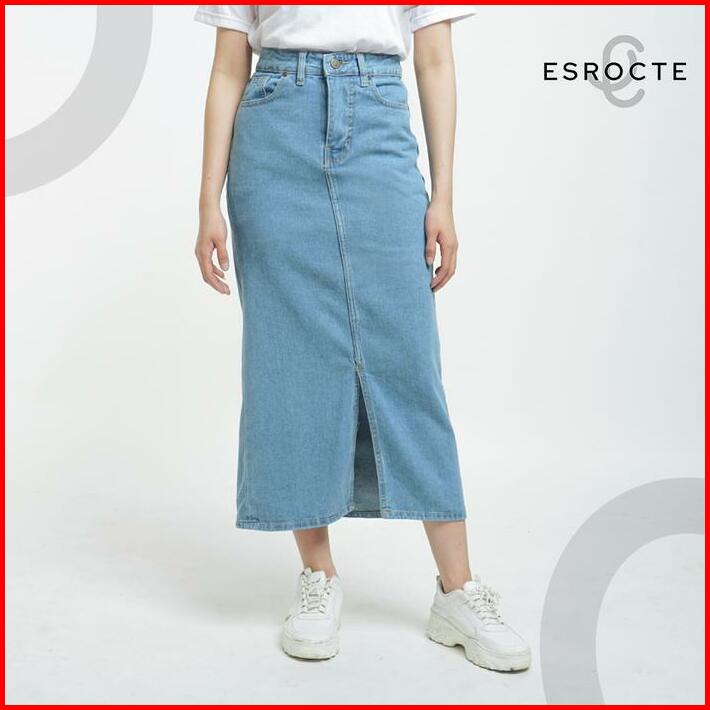 Esrocte Rok Denim Skirt Mid Waist Panjang Jeans Wanita P65