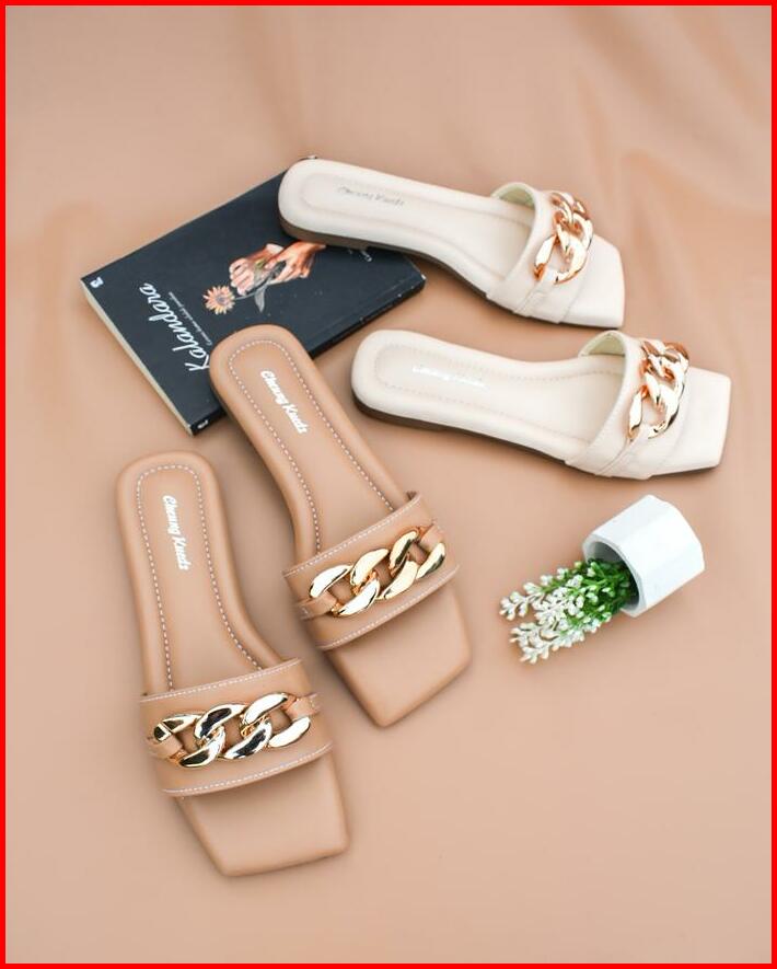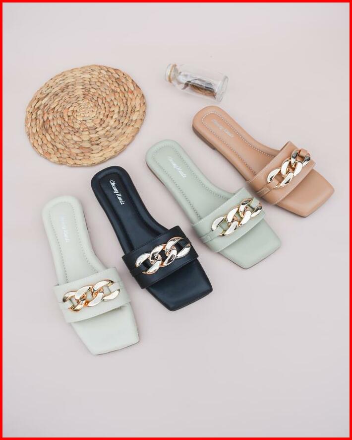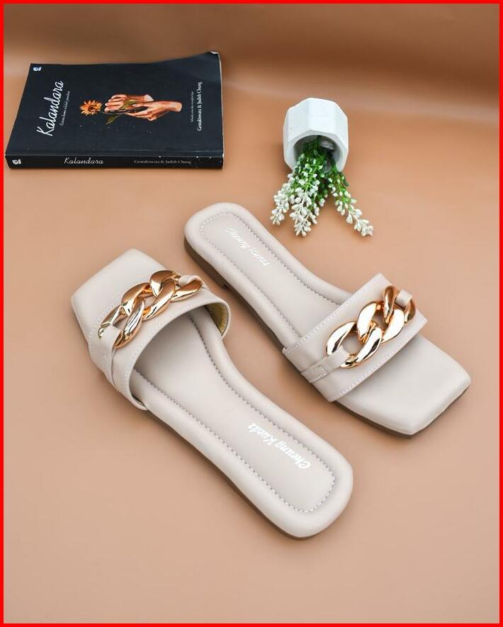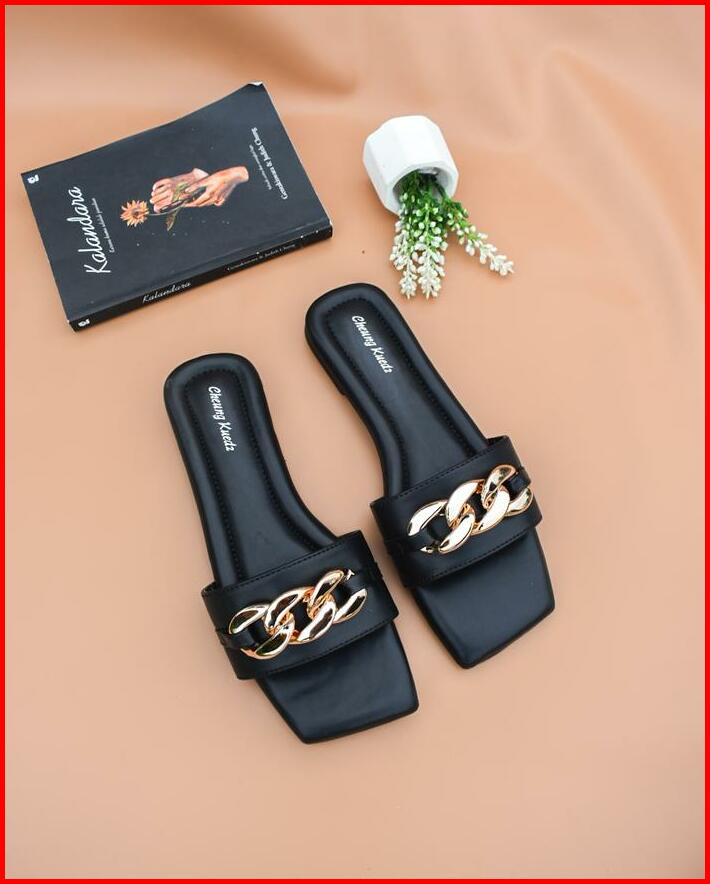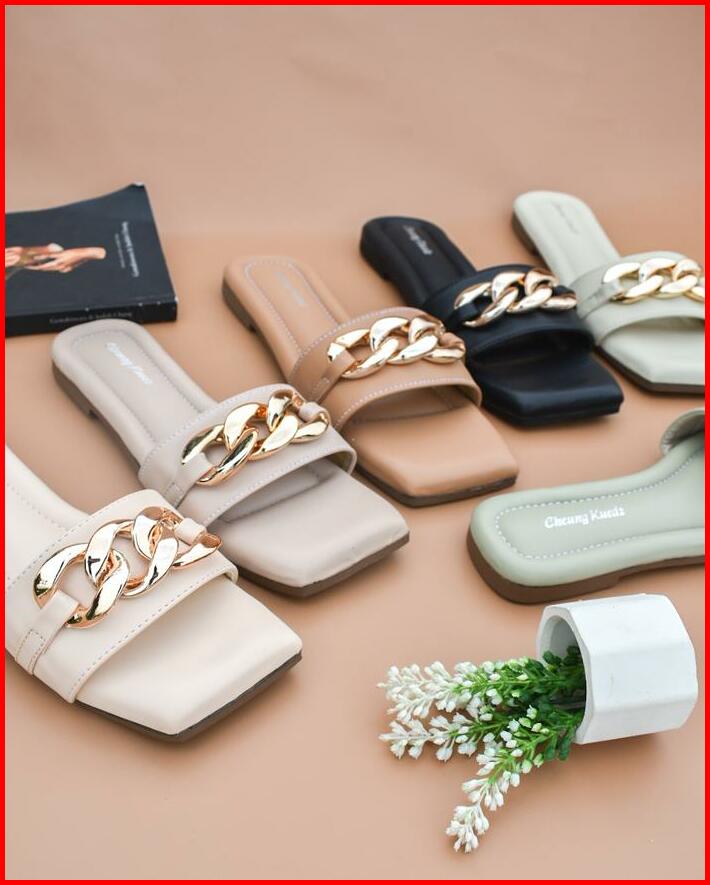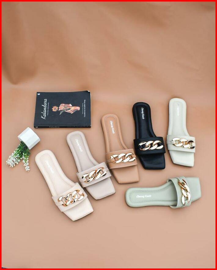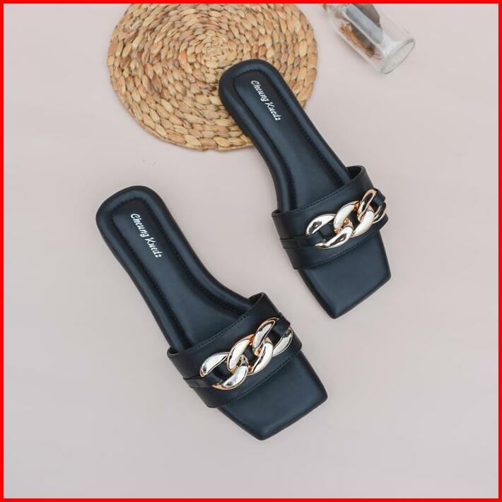 Cheung Kuedz Tamara Sandal Slop Terbuka Wanita Variasi Rantai Sendal