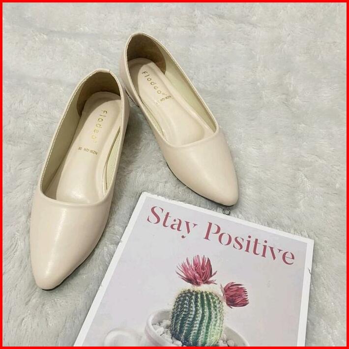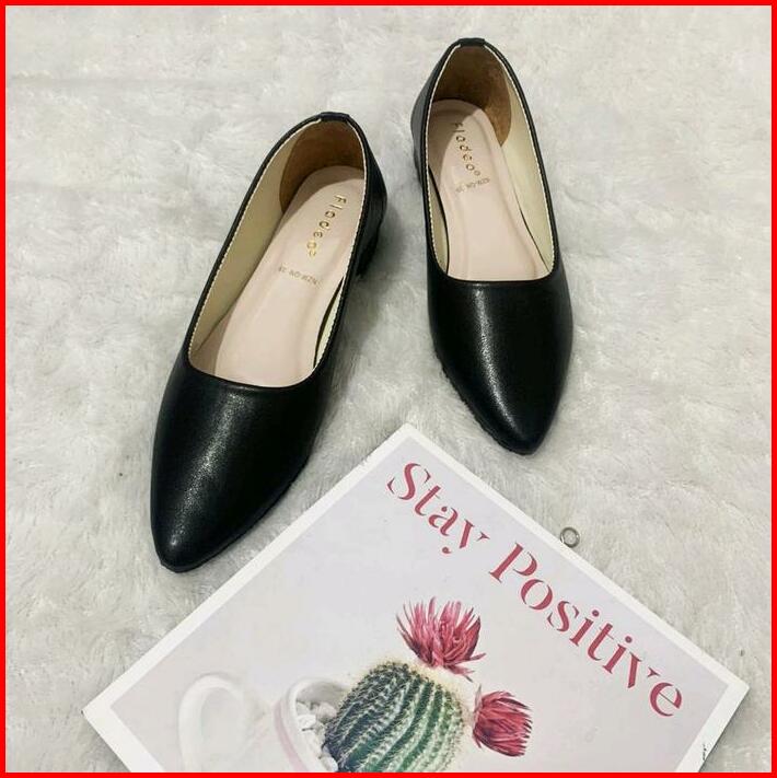 Fladeo Sepatu Pantopel Wanita Polos Cantik Shoes Hitam Kerja Flat