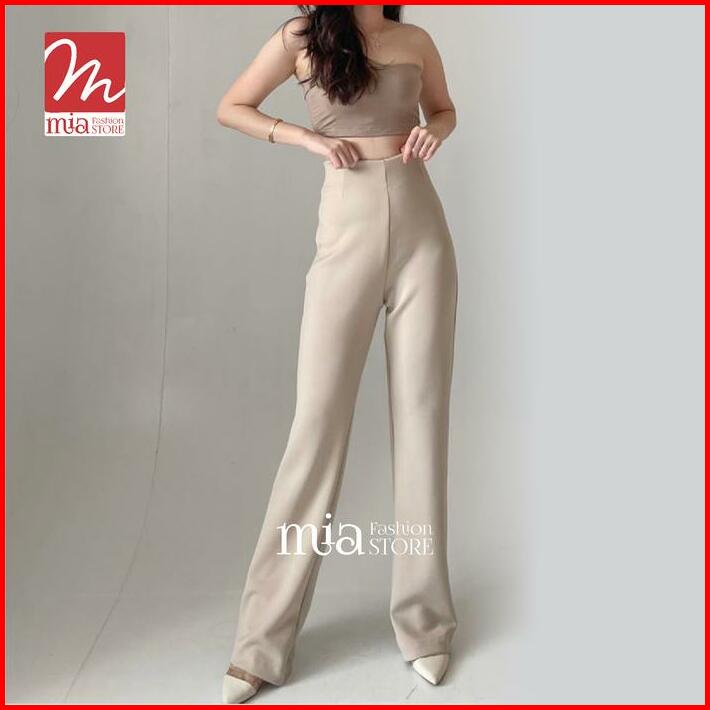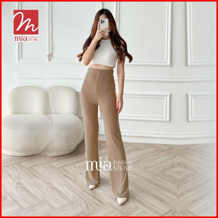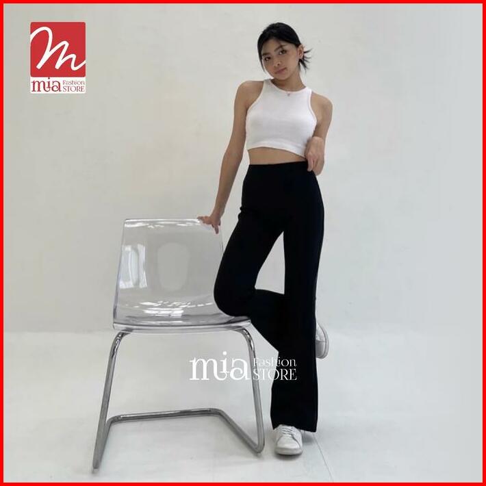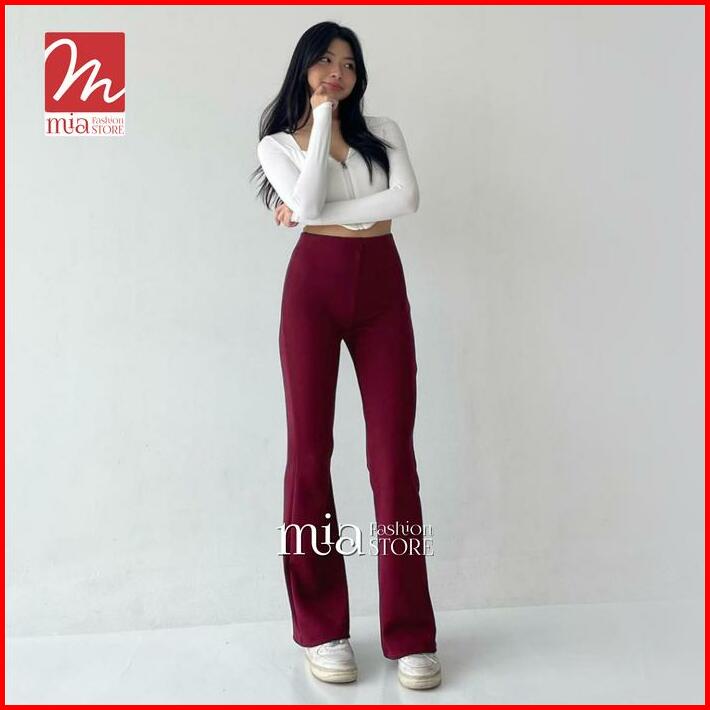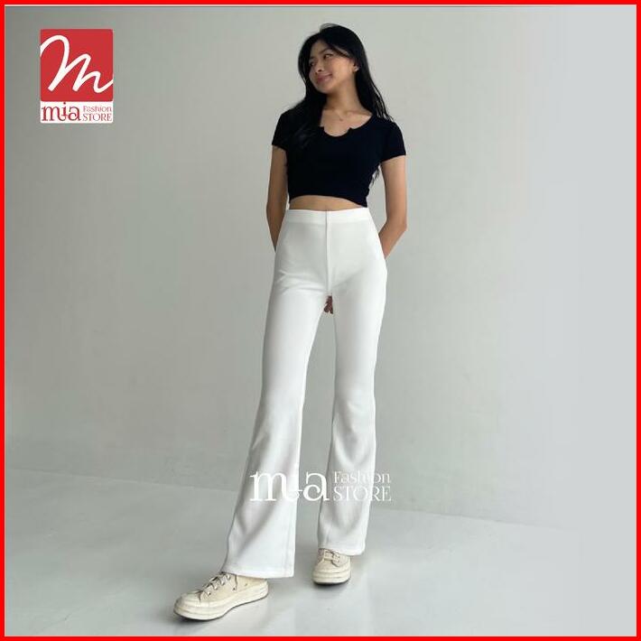 Flare Pants Cutbray High Waist Celana Kulot Panjang Scuba Wanita