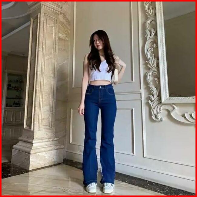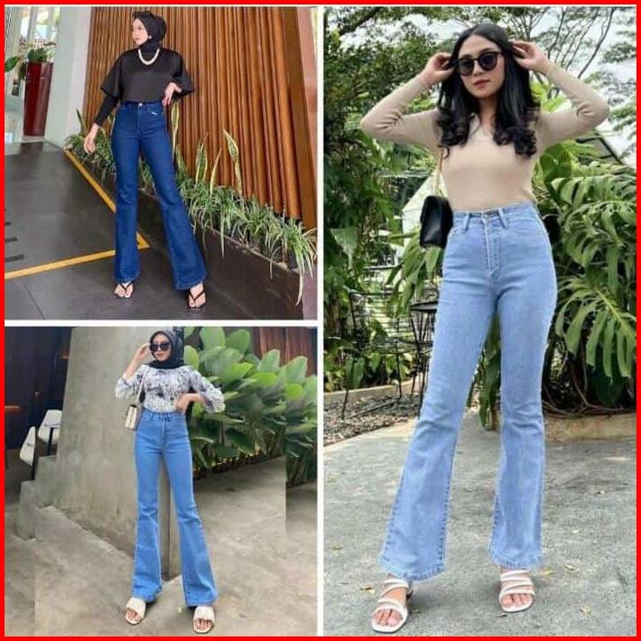 Highwaist Lily Cutbray Jeans Wanita Celana Panjang Denim Cutbray Hitam