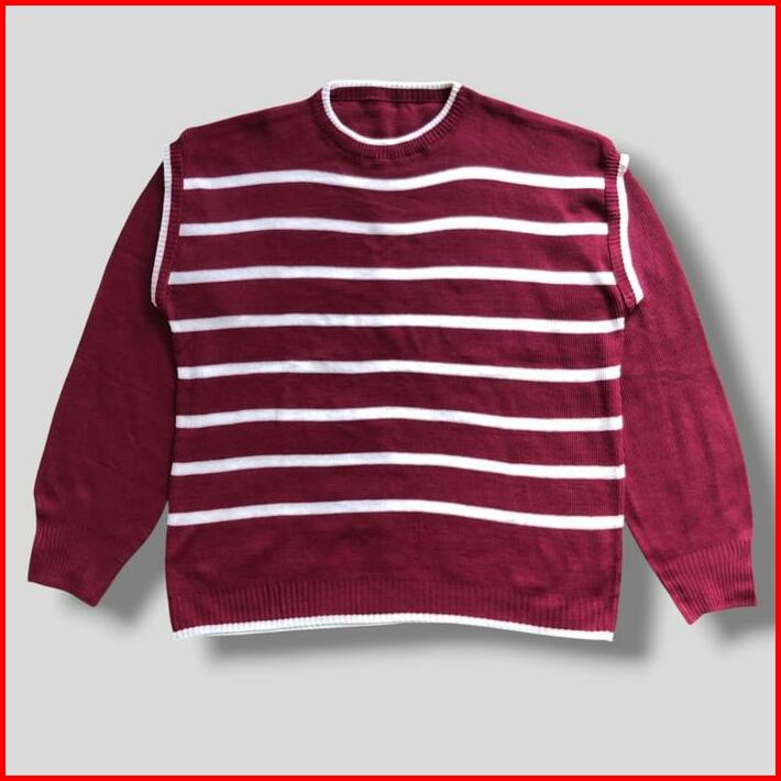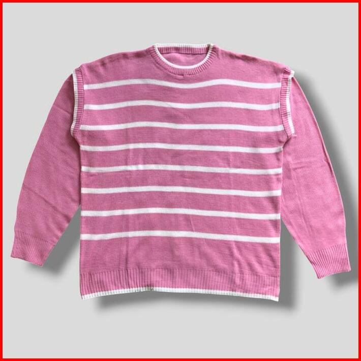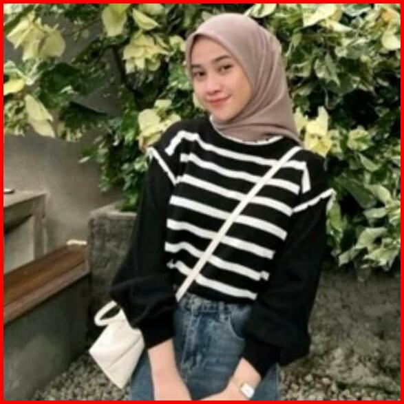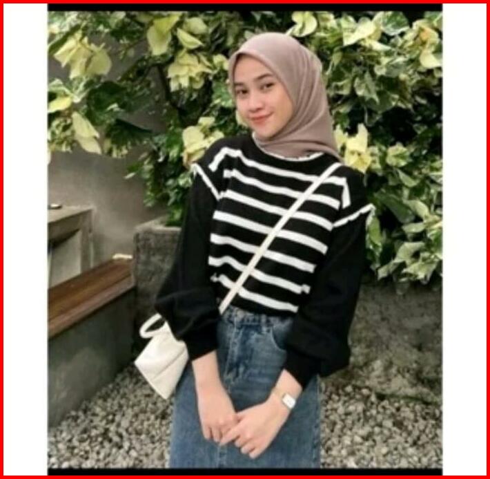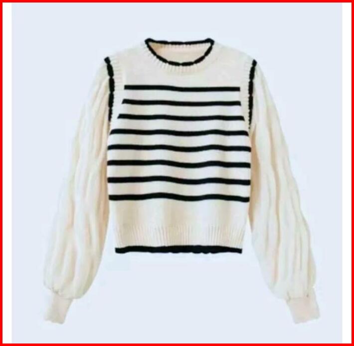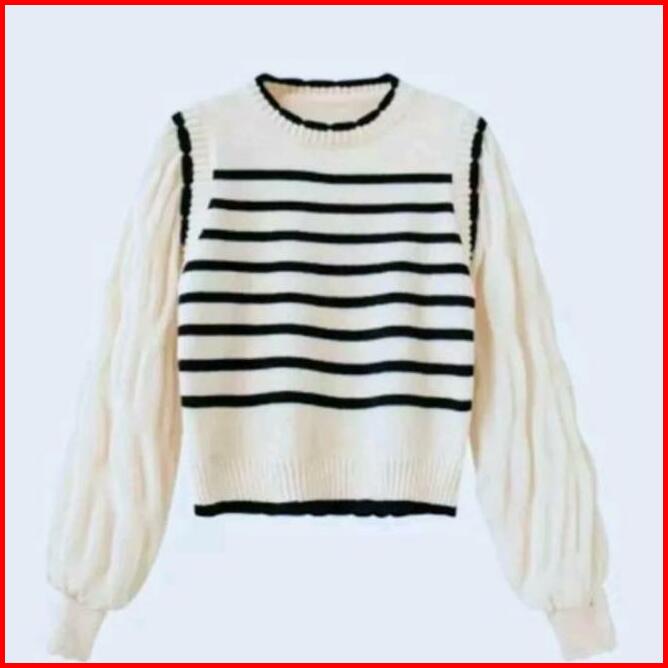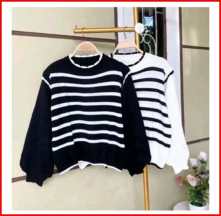 Atasan Rajut Garis Tangan Balon Wanita Haruka