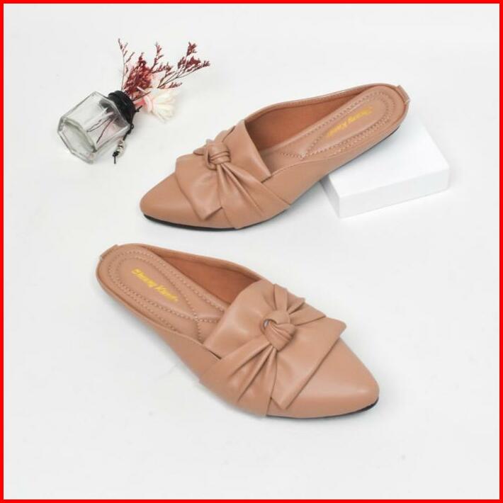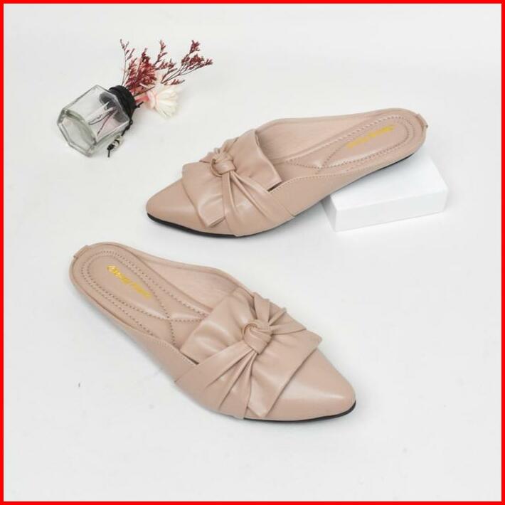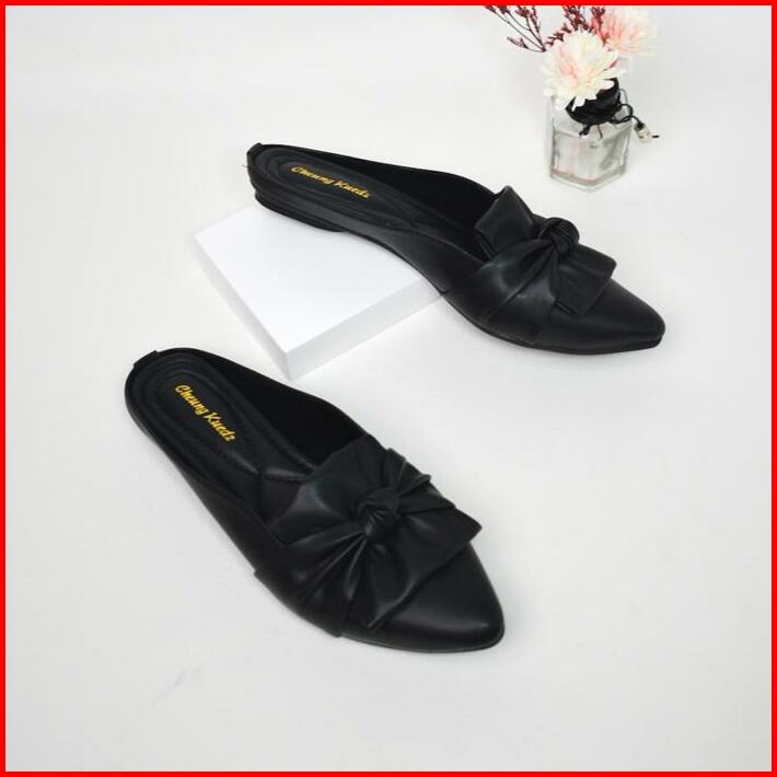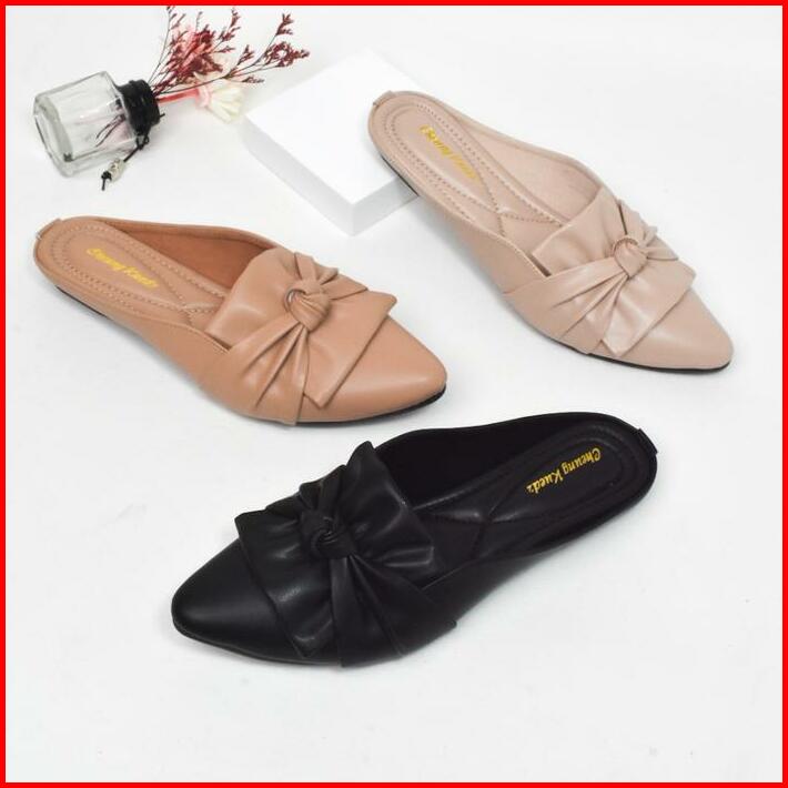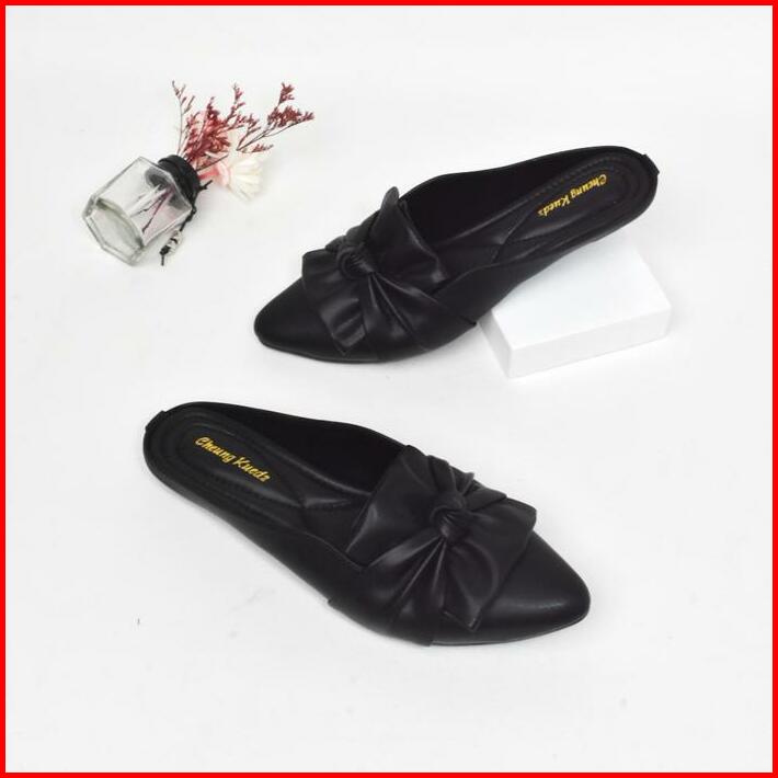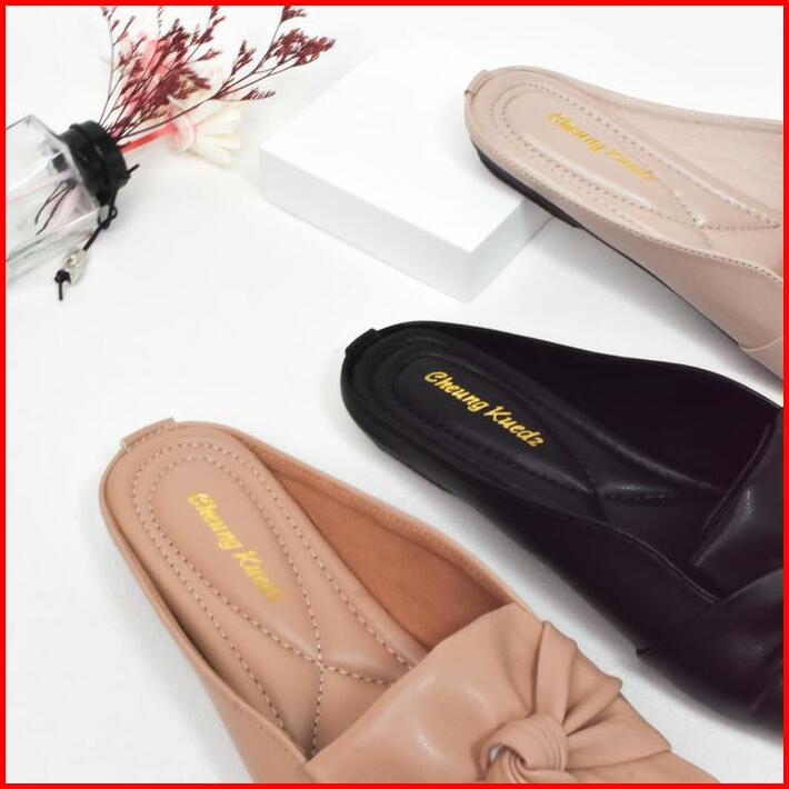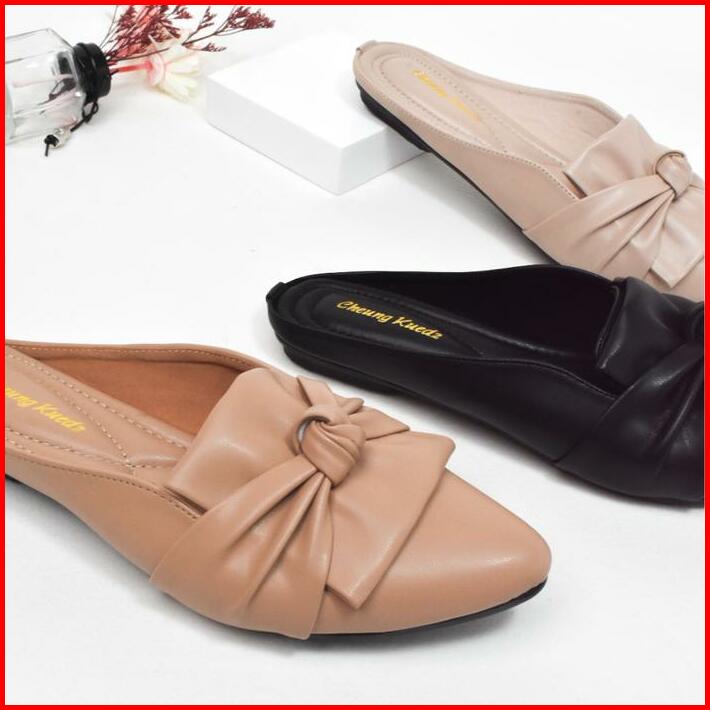 Cheung Kuedz Kirana Sandal Mules Slop Bustong Flat Wanita Flatshoes Sol Karet