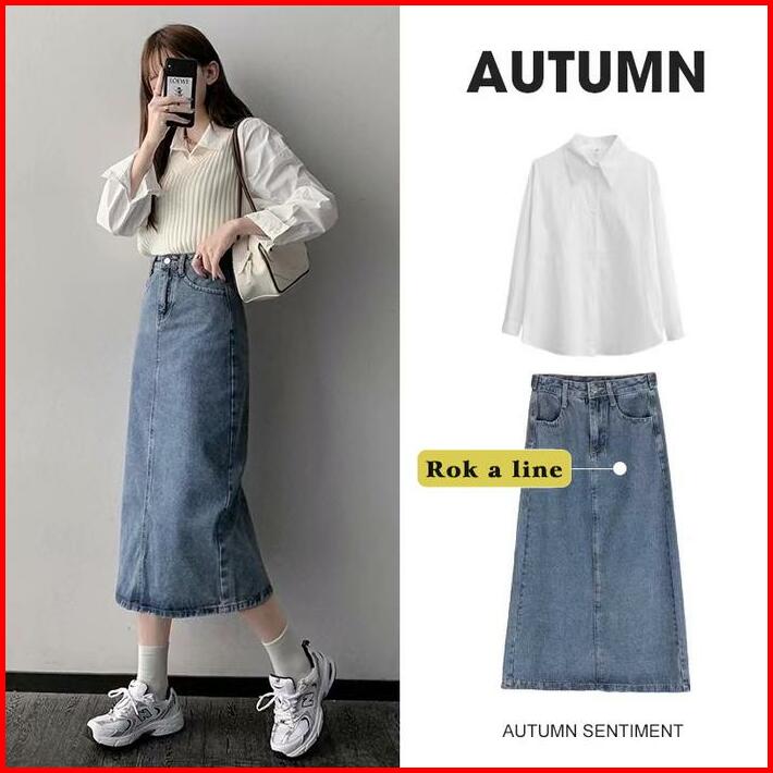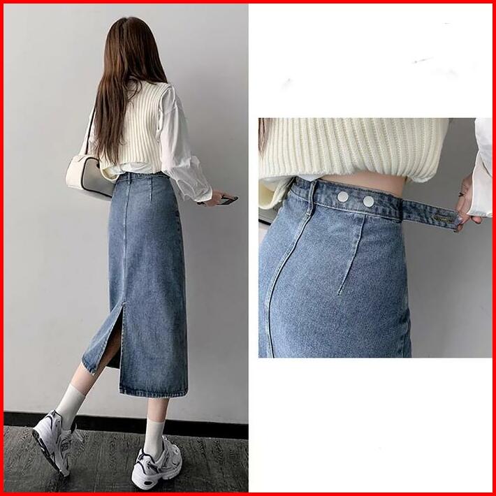 Jeans.cewekrok Jeans Panjang Korean Style High Waist 7 8 Rok A Line Midi Skirt Kekinian Rok Jeans Androk Wanita Rok Jean