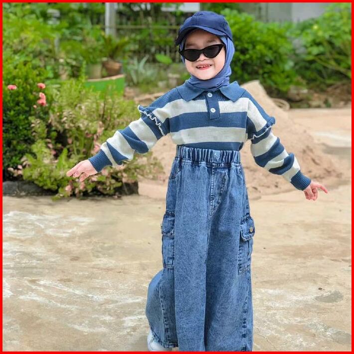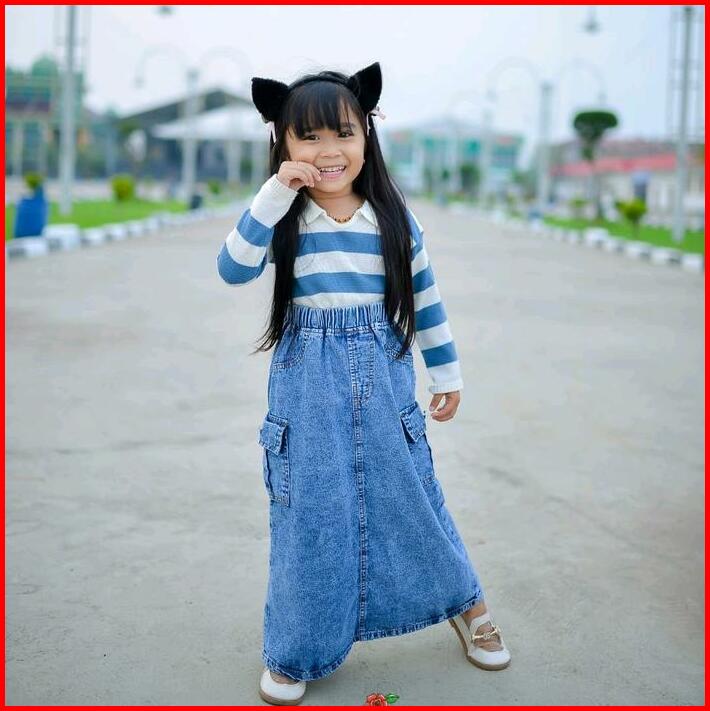 Rok Panjang Cargo Jeans Dan Celana Panjang Cargo Anak Kekinian Usia 2-12tahun Perempuan Boho Xl