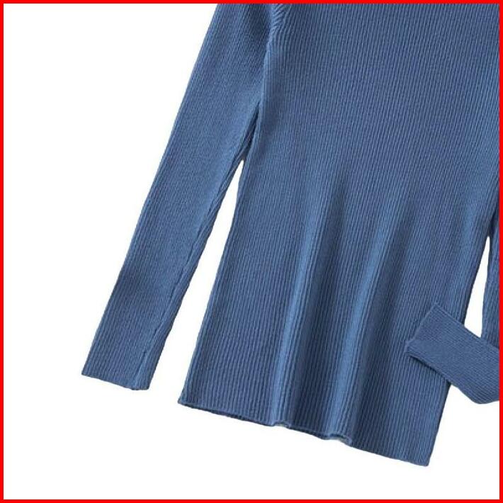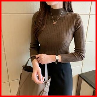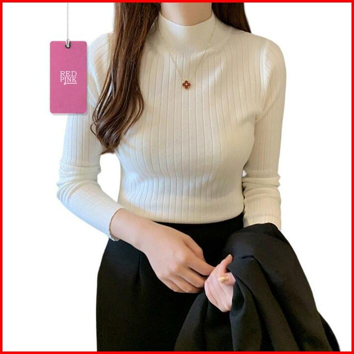 Redpink Baju Atasan Crop Korean Outfit Style Cewek Remaja Type Turtleneck Corak Garis Halus Stripped Long Sleeve Edition