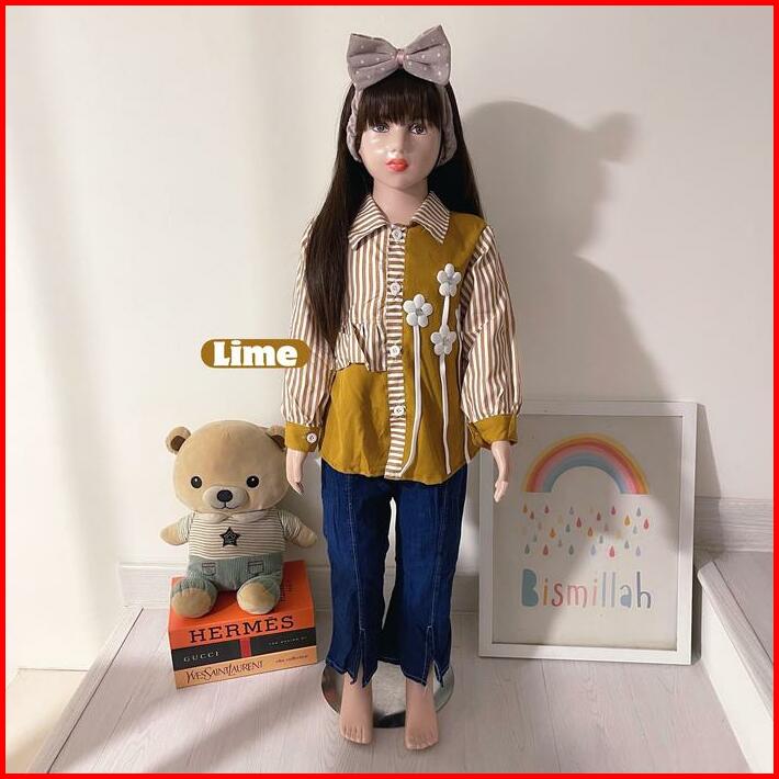 Setelan Salur Anak Perempuan Bunga Clara Mix Jeans Cutbray Usia 3-10 Tahun Fashion Anak Terbaru