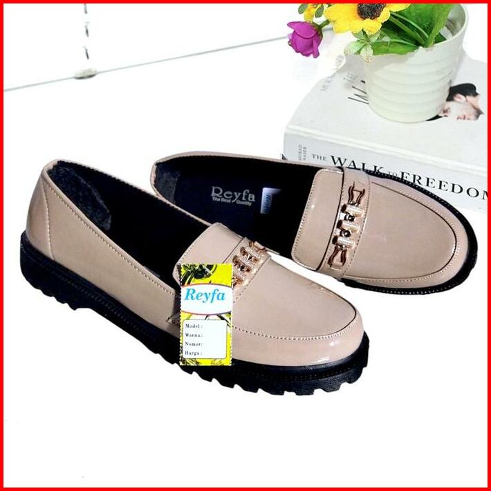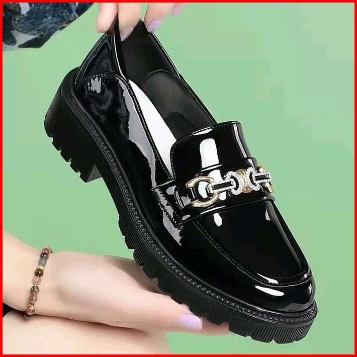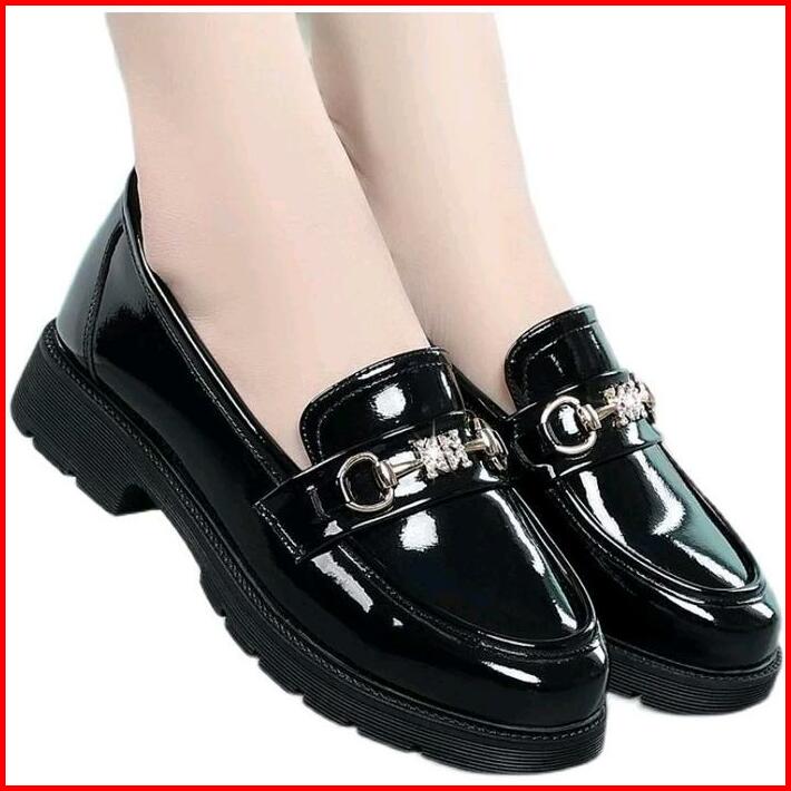 Sepatu Wanita Dockmart Oxford Hitam Glossy Slip-ons Kerja Cewek Kasual Kode 17 Shoes Flat