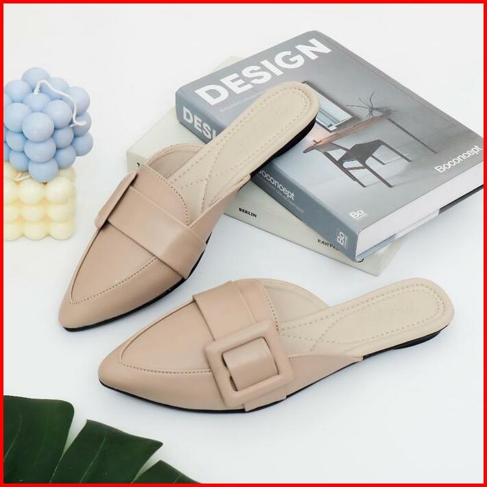 Muda Bellia Sendal Flat Shoes Slip On Wanita Bening