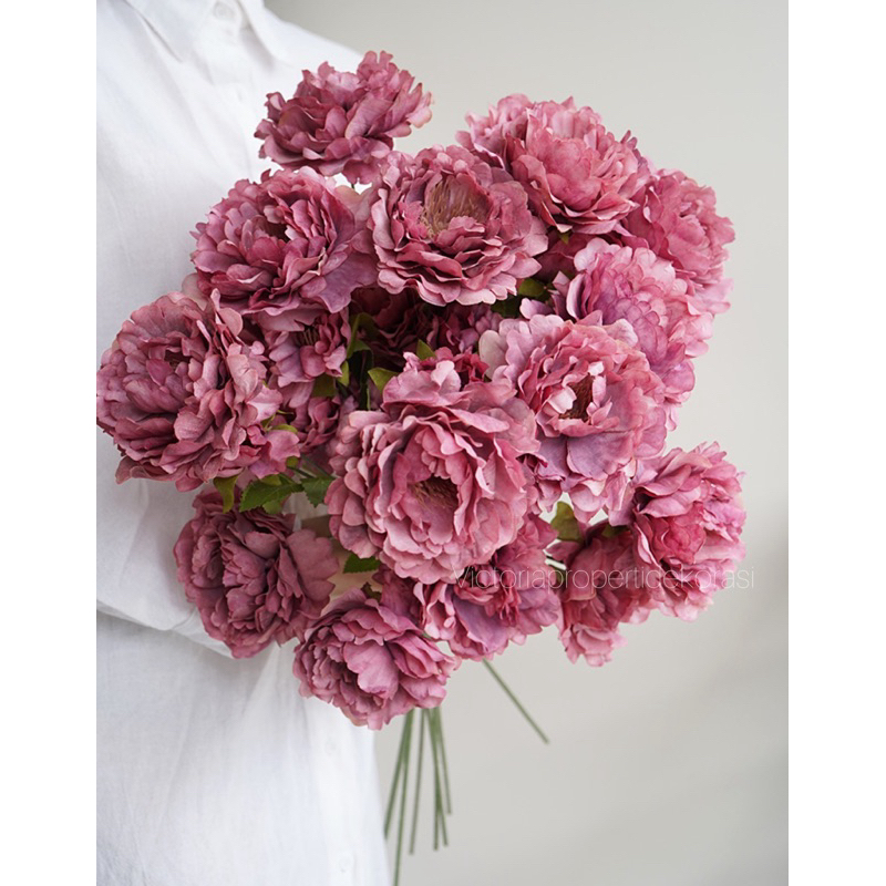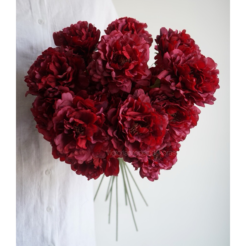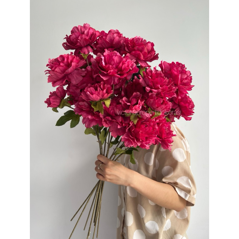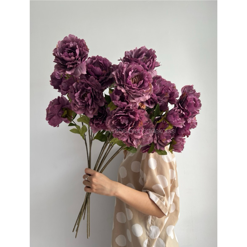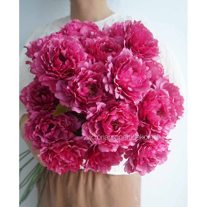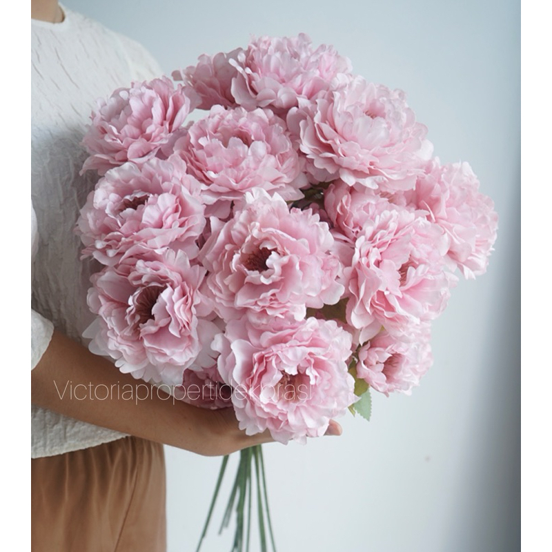 (FLASH SALE) Bunga Artificial Peony Mekar Eropa T60 cm Aksesoris Dekorasi