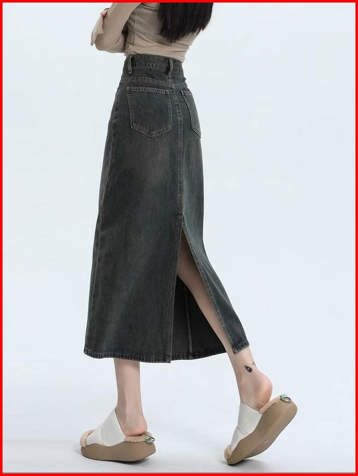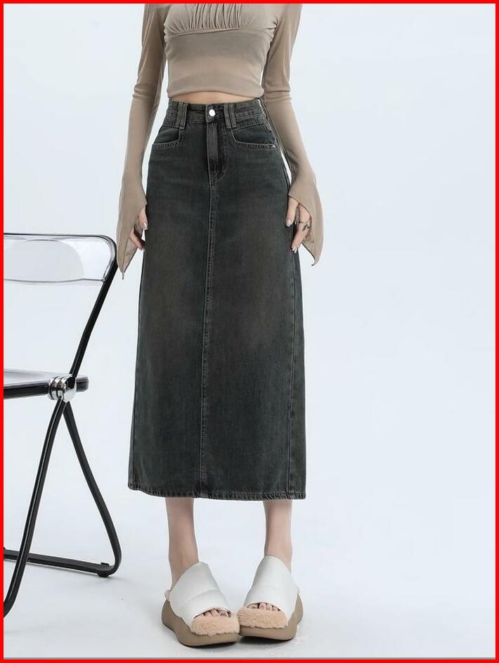 Retro Rok Jeans A-line Highwaist Rok Jeans Wanita Korean