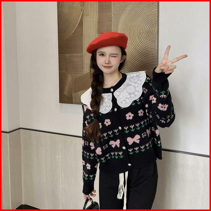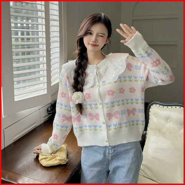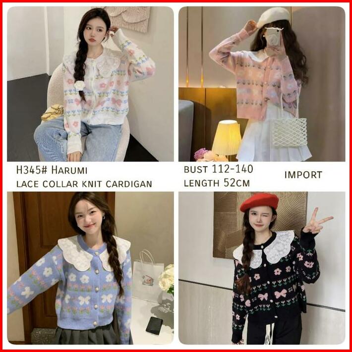 Basica Moda H345 Atasan Top Baju Outer Kardigan Wanita Harumi Rajut Lace Collar