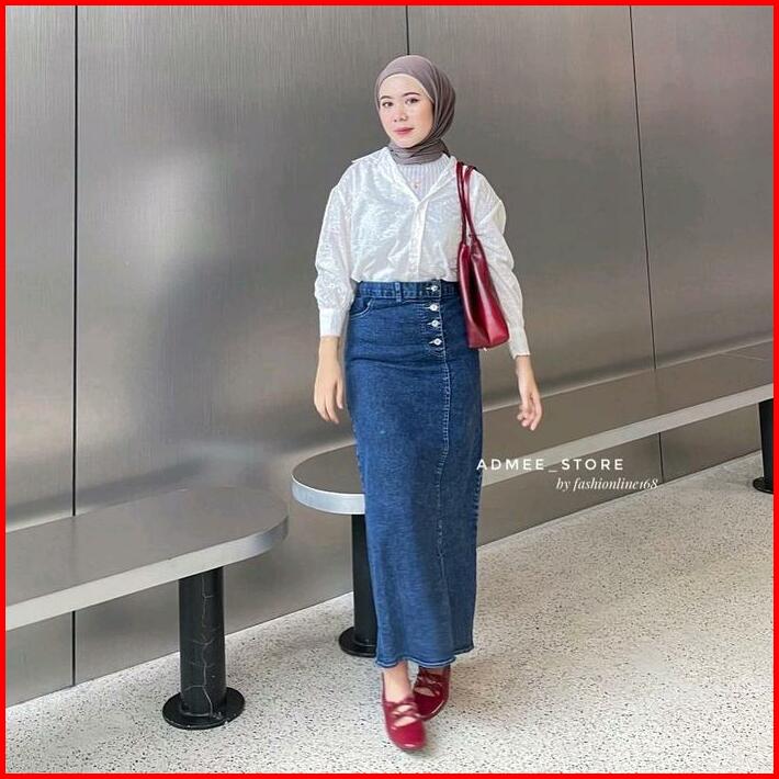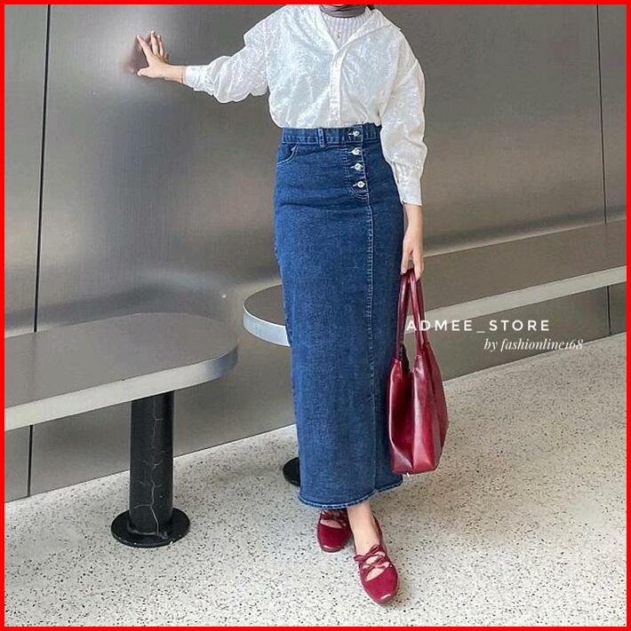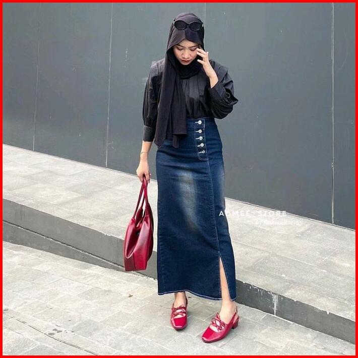 Rok Jeans Skirt Belah Samping Kamila Casual Denim