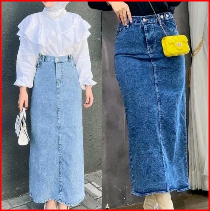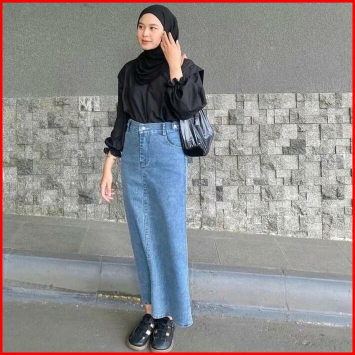 Highwaist Rok Span Jeans Skirt Theana Pinggang Karet