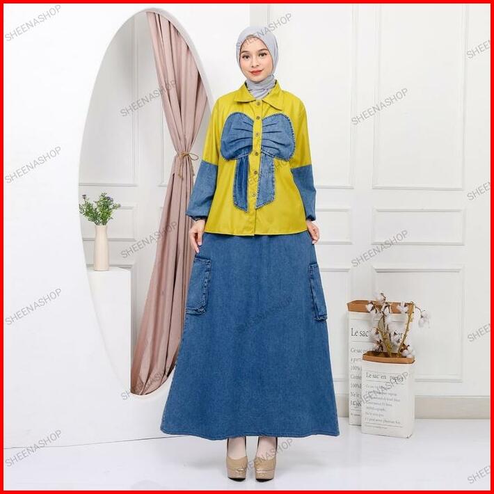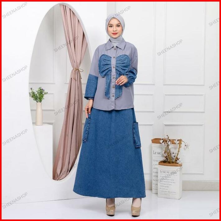 Shasha Set Rok Panjang Jeans Denim Muslim