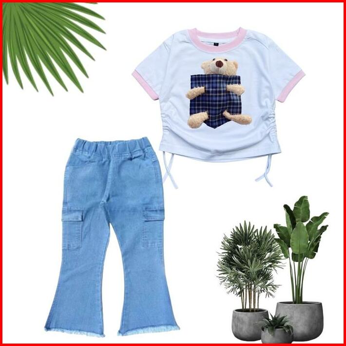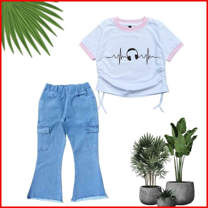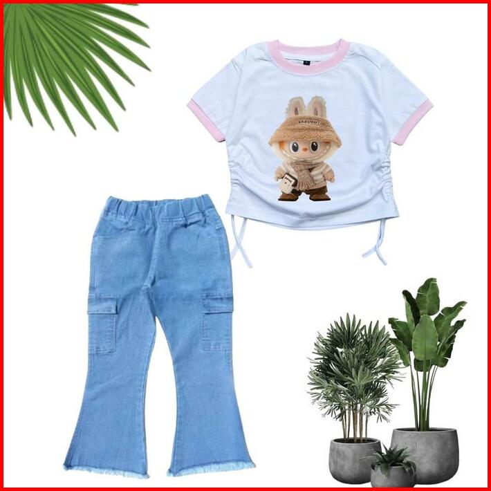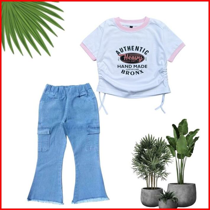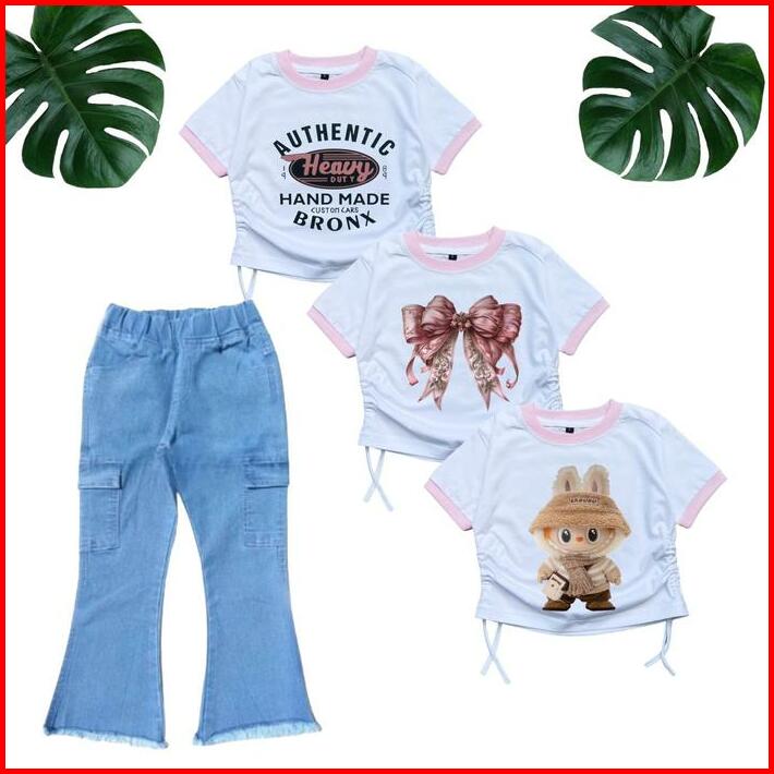 Ekslusif Raihana Setelan Cutbray Cargo Jeans Dan Kaos Serut Pink Putih
