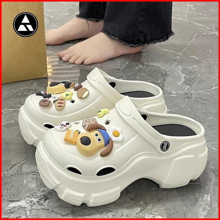 Derta Sandal Wedges Wanita Baim Fuji Karet Eva Jibbitz Jelly Slop Sandal Kodok Size 36-41 Tinggi 7cm Sendal Sepatu Wanit