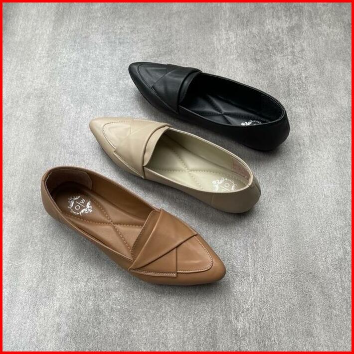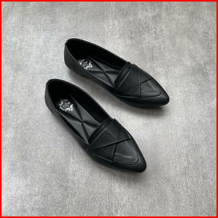 Sepatu Wanita Flat Shoes Suzi Sol Karet Hitam Kerja Cewek Ngan Tor Perempuan