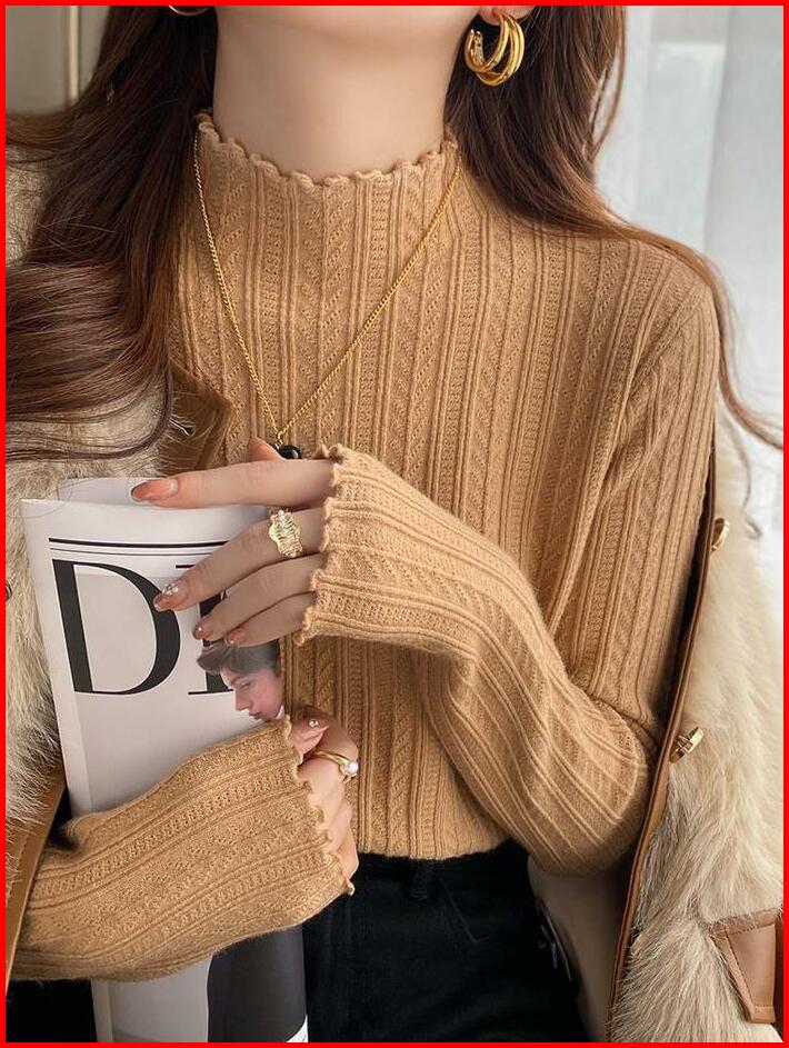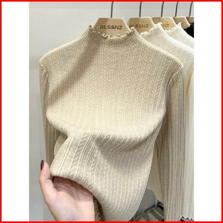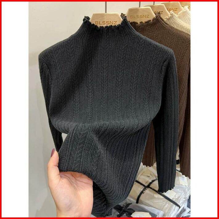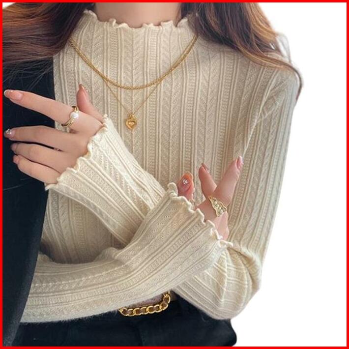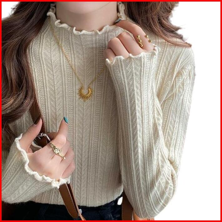 Atasan Rajut Wanita Turtleneck Model Terbaru Baju Panjang Knitwear Kerah Bunga