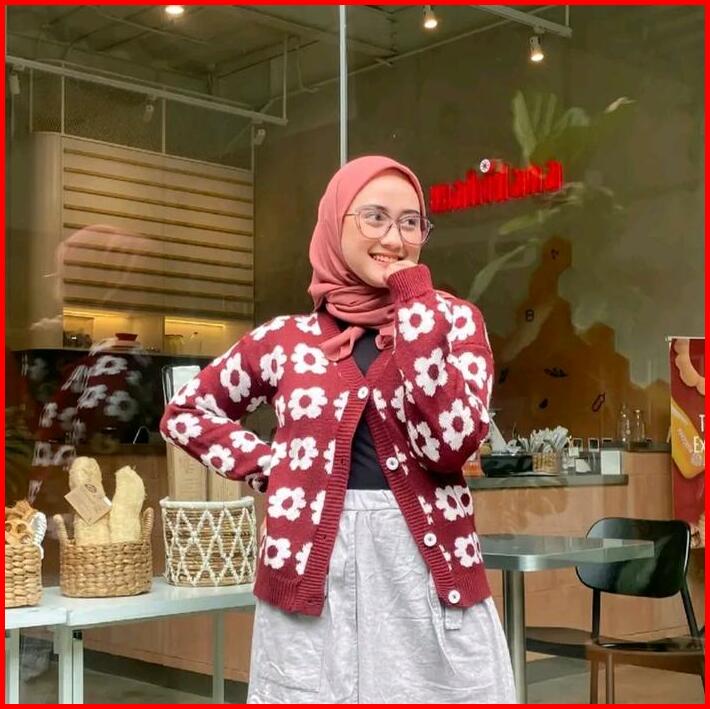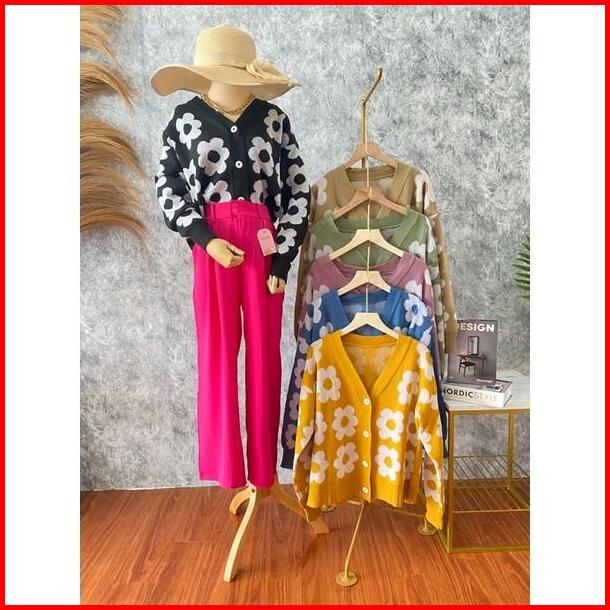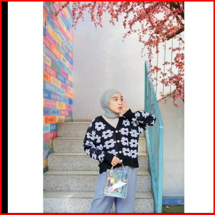 Cardigan Rajut Motif Bunga Button Cardy Kardigan Wanita Remaja Oversize Kekinian Terbaru Santai Wol Bunga Knitwear Tebal