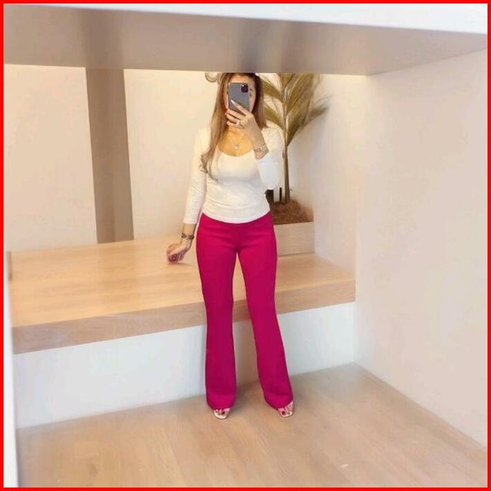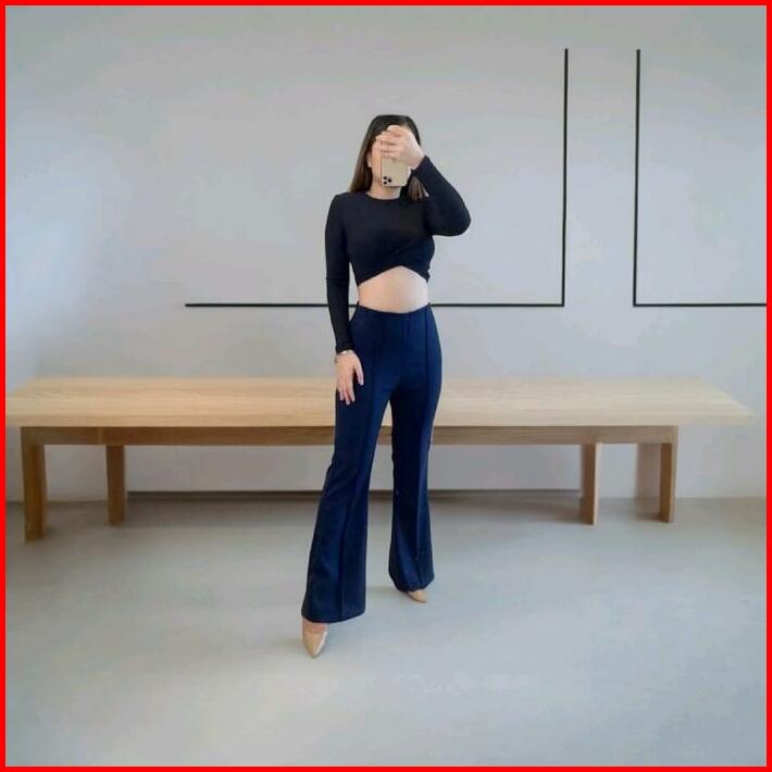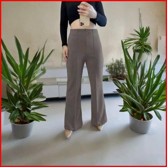 Celana Panjang Cutbray Kerja Wanita Scuba Premium Karet Basic Standar High Waist Kekinian